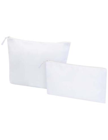 Juego de dos neceseres fabricados con poliéster reciclado con certificado GRS. El juego incluye una bolsa grande y otra pequeña para un almacenamiento organizado. Ligero, duradero y fácil de guardar. La bolsa grande mide 32 x 21 cm y la pequeña, 23 x 13 cm.
