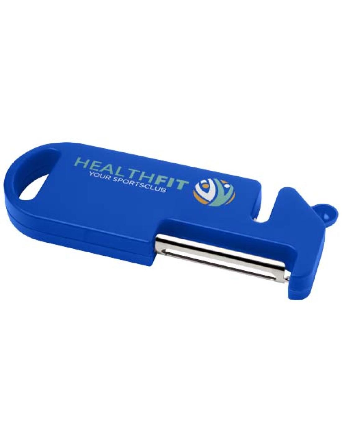 Este utensilio de cocina multiusos combina cuatro funciones esenciales en un diseño compacto. Fabricado con plástico reciclado, cuenta con pelador, abridor de botellas, afilador de cuchillos y una punta puntiaguda para eliminar las marcas de las patatas. Cuenta con un orificio para colgar que permite guardarlo fácilmente. Práctico y compacto, es un utensilio versátil que no puede faltar en casa.
