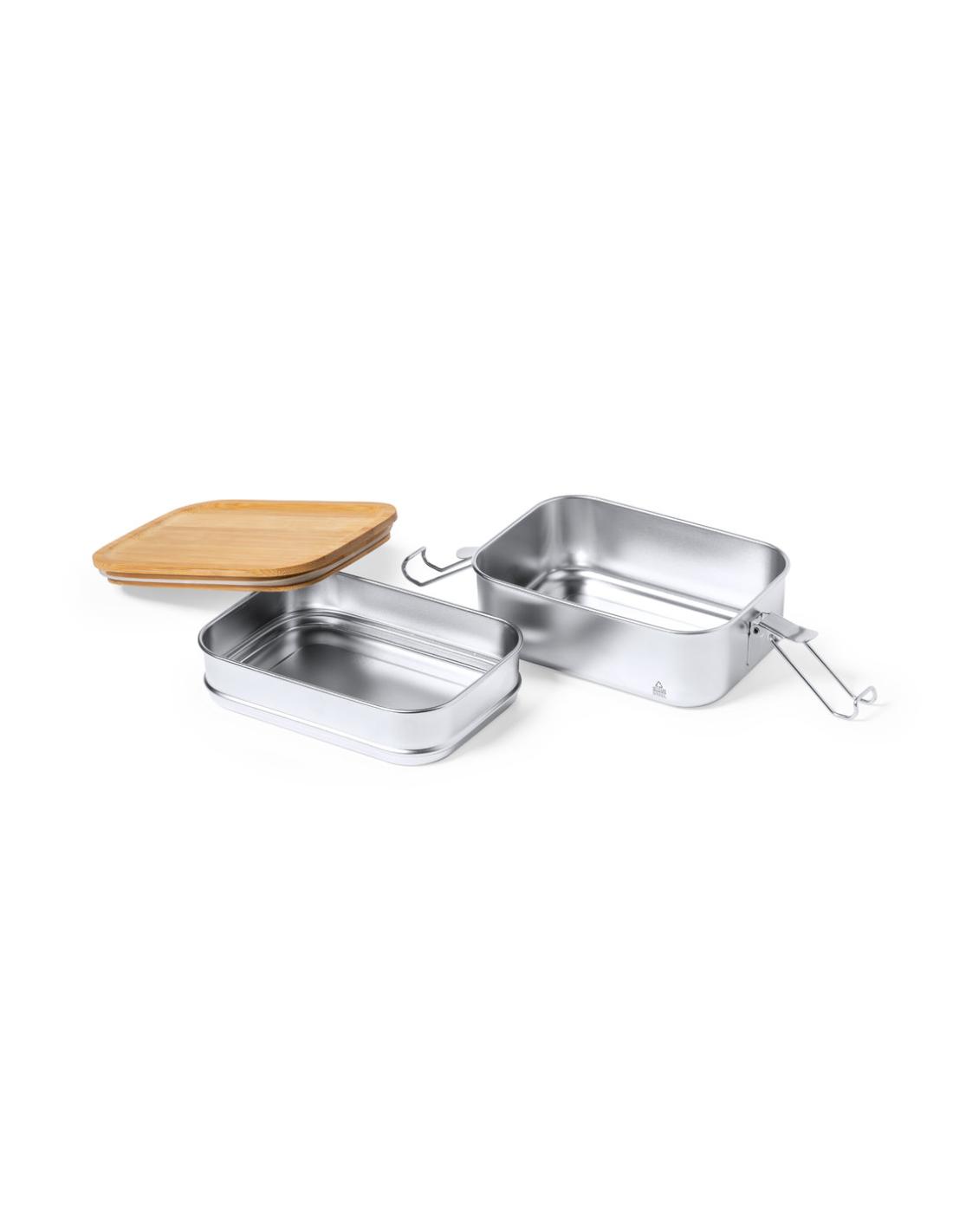 Fiambrera de 940 ml de capacidad, fabricada en acero inox reciclado. Dos compartimentos de 340 ml y 600 ml, con tapa hermética en bambú y cierres de seguridad con distintivo acero inox reciclado. Presentada en caja individual de diseño. El acero es uno de los materiales más demandados y que puede encontrarse casi en todas partes, desde productos de uso diario a grandes construcciones. Con innumerables propiedades, entre las que cabe destacar la durabilidad y su alto grado de reutilización, convirtiéndolo en una alternativa muy valorada en soluciones de sostenibilidad. Debidamente tratado, permite obtener nuevos recursos de infinita utilización.