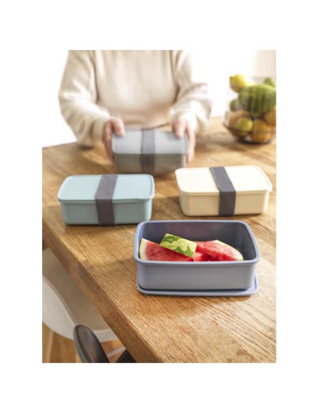 La fiambrera de 800 ml "Dovi" está diseñada para la comodidad diaria. Cuenta con un cierre elástico que mantiene la tapa en su sitio y es perfecta para las comidas fuera de casa.