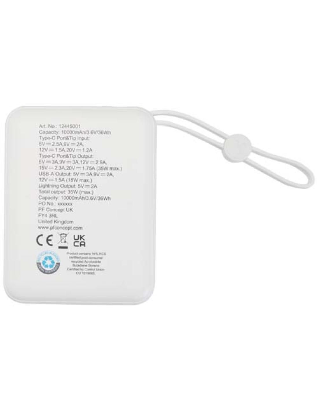 Batería externa para tableta de 10 000 mAh y 35 W con cable tipo C integrado y fabricada con plástico reciclado N10054421