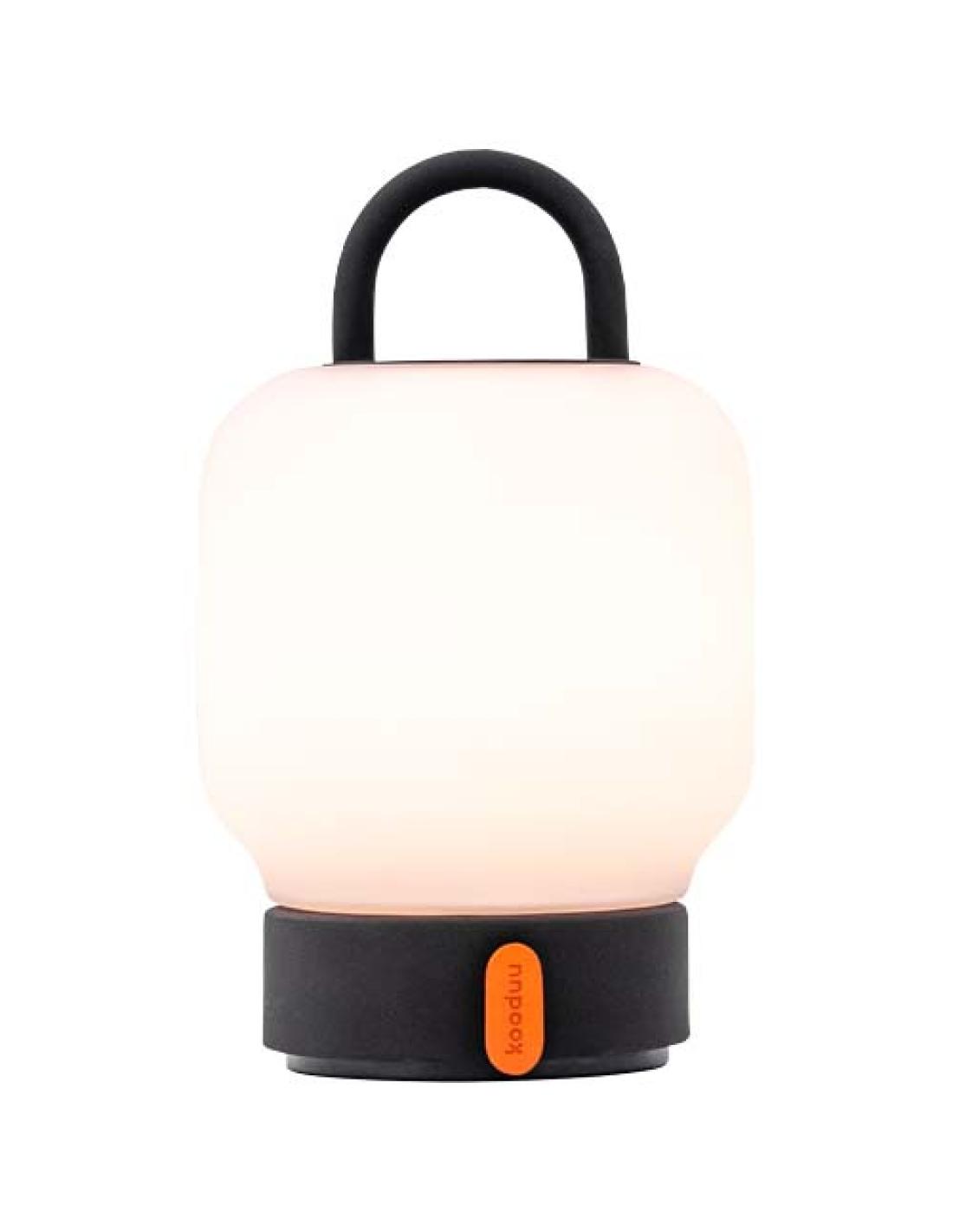 La "Kooduu Loome" es una lámpara de mesa portátil de estilo farol diseñada para aportar elegancia y una iluminación suave a cualquier espacio. Dispone de una luz difusa, regulable de forma continua de 0 a 100 %, con una temperatura de color cálida de 2700 K que crea un ambiente acogedor. La lámpara ofrece 101 lúmenes de brillo y proporciona una iluminación suave, pero eficaz. Una práctica asa facilita su transporte, mientras que la base de carga USB facilita la recarga. Con una batería recargable de 4000 mAh, ofrece hasta 40 horas de uso con una sola carga, ideal para largas veladas o en exteriores.