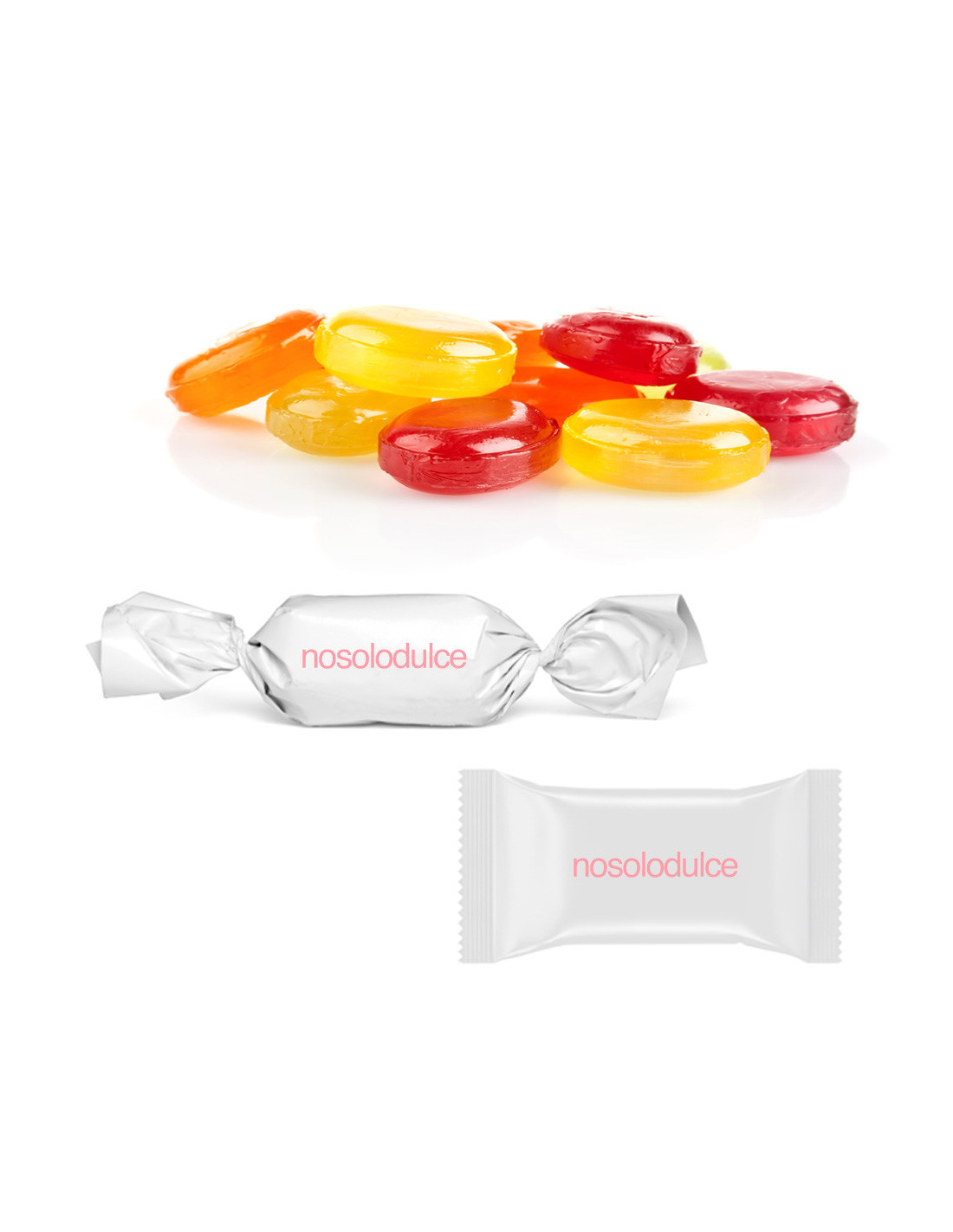 Caramelo rectangular con dos lazos (doble lazo) o sobre sin azúcar envuelto en papel de celofán… tenemos una variedad para cada gusto. Puedes personalizarlo con el logo de tu empresa. Ideal para todo tipo de negocios, comercios y más.