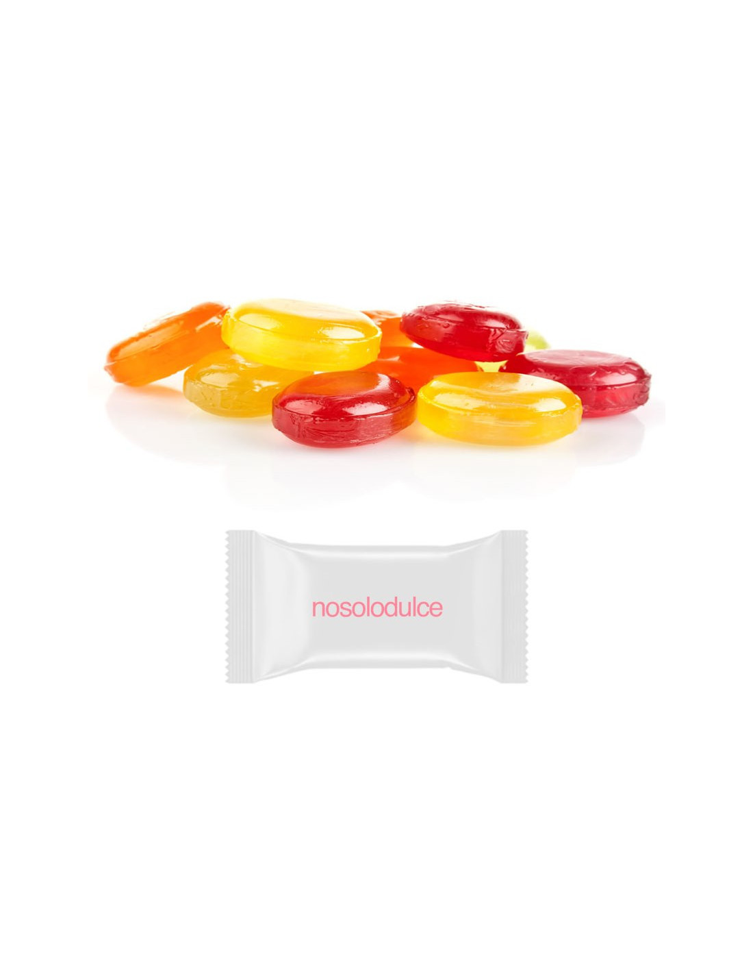 Caramelo envasado en formato sobre de medidas 50x25 mm. Podrás combinar los sabores como tú quieras. Personalízalo a tu gusto con el logo de tu empresa.