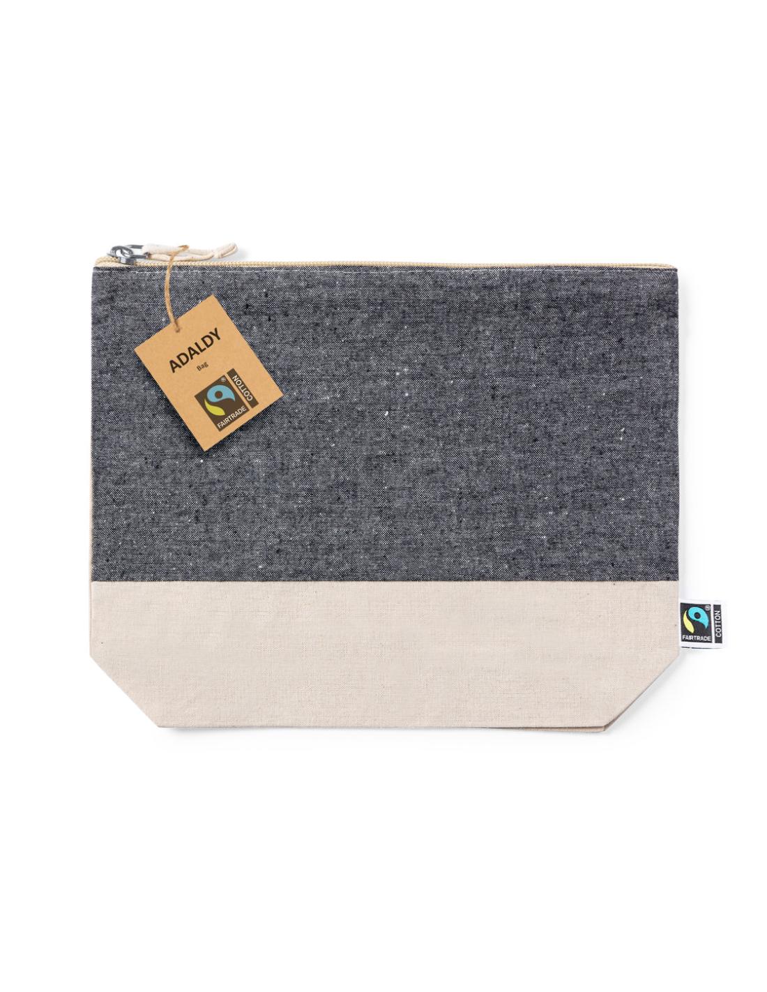 Neceser de línea nature, fabricado en algodón 100%. Con certificación Fairtrade (Comercio Justo), un sistema comercial solidario y alternativo al convencional que persigue el desarrollo de los pueblos y la lucha contra la pobreza. Compartimento principal con cierre de cremallera y tirador a juego, con base en tono natural y parte frontal superior disponible en tonos negro y natural. Incluida etiqueta Fairtrade y hangtag distintivo en cartón reciclado.