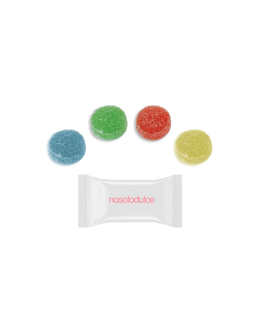 Delicioso caramelo de pectina redondo con azúcar personalizado en el envoltorio. Tienes la posibilidad de combinar sabores. Puedes escoger el fondo del papel en transparente o de color blanco. Al realizarse la impresión fotocentrada, el logo quedará siempre centrado.