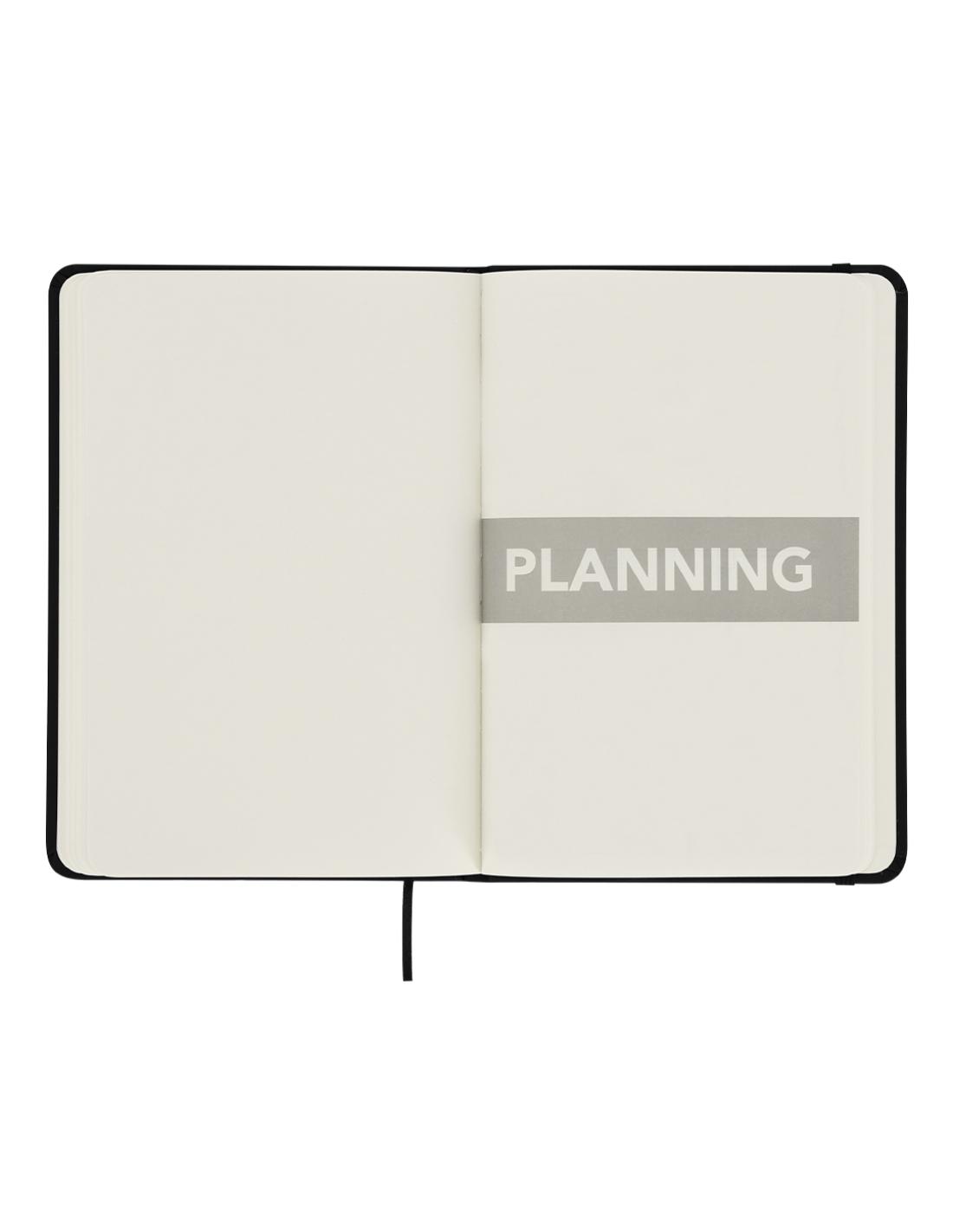 Bloc de notas con planificador mensual incluido. Elaborado en suave PU, con banda elástica a tono. Incluye: - 98 hojas color crema, sin líneas - 13 hojas de planificador mensual no fechado, con vista de calendario mensual - hojas adicionales para notas, con disposición a rayas Perfecto para planificar tu mes, tomar apuntes o notas y organizar tu día a día.