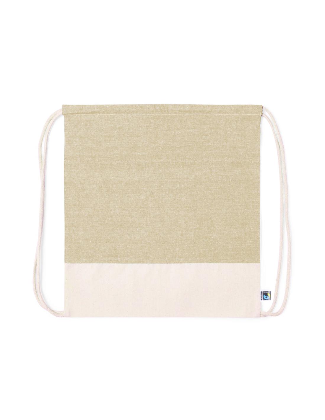 Mochila de cuerdas de línea nature, fabricada en algodón 100% de 140g/m2. Con certificación Fairtrade (Comercio Justo), un sistema comercial solidario y alternativo al convencional que persigue el desarrollo de los pueblos y la lucha contra la pobreza. De acabado cosido y cuerdas en algodón a juego con base en tono natural y parte frontal superior disponible en tonos negro y natural. Incluida etiqueta Fairtrade y hangtag distintivo en cartón reciclado.