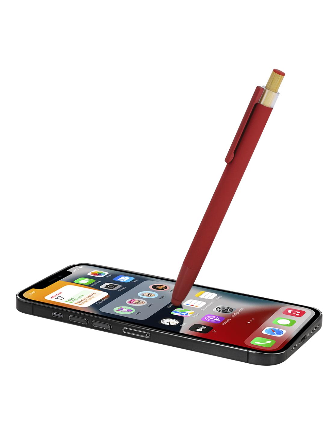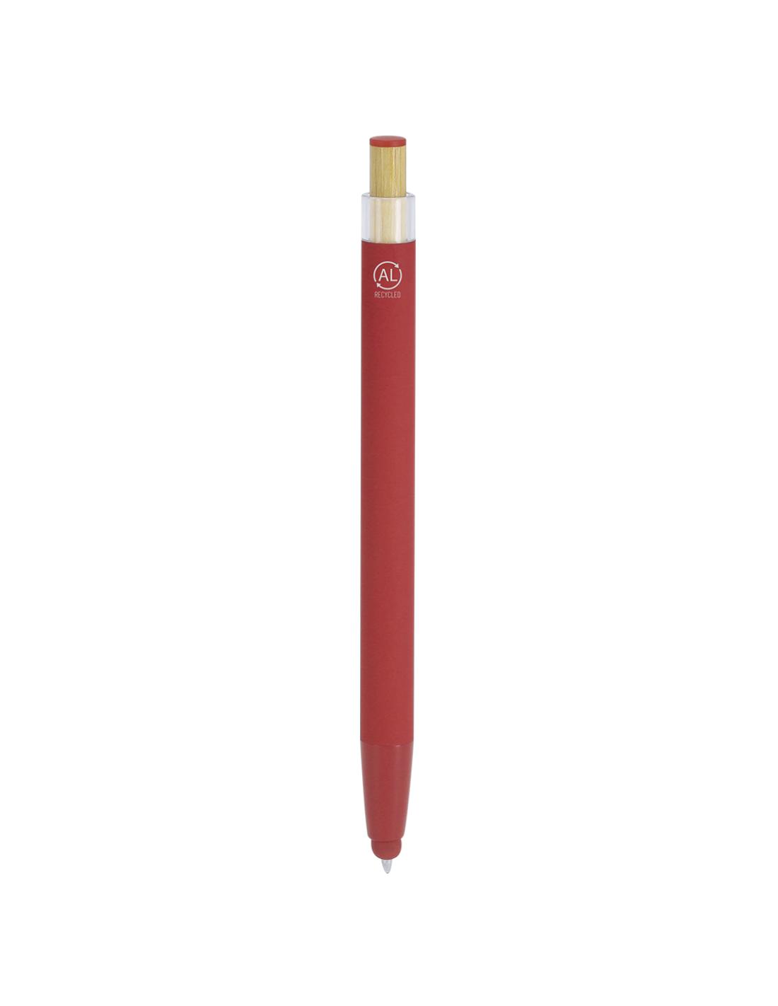 Bolígrafo puntero fabricado en aluminio reciclado. Cuerpo en acabado gomoso. Diseñado con pulsador en bambú y detalle superior a juego con el color del cuerpo y clip metálico a tono. Mecanismo pulsador. Incluye distintivo aluminio reciclado. El aluminio reciclado es un material con posibilidades de reciclaje casi infinitas, sin perder sus propiedades originales y consumiendo menos energía en este proceso. Certificación GRS (Global Recycled Standard / Estándar de Reciclaje Global), que garantiza el origen reciclado del material usado para fabricar el producto. Materiales como el Bambú fomentan la utilización de materias primas naturales reduciendo las emisiones contaminantes. Además, el bambú proviene de una planta de gran resistencia y versatilidad, con crecimiento y regeneración rápida, siendo una excelente...