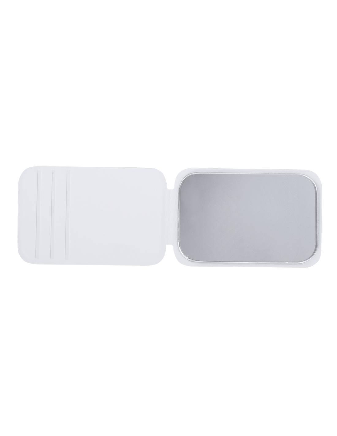 Espejo plegable con cubiertas en suave PU. Diseñado con soporte ajustable en tres posiciones. Con aumento 1x.