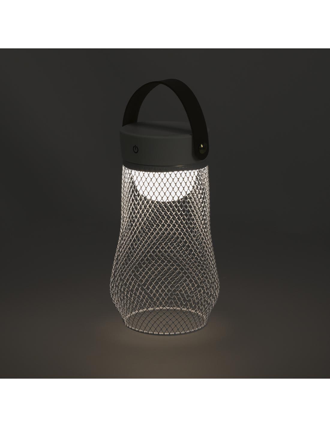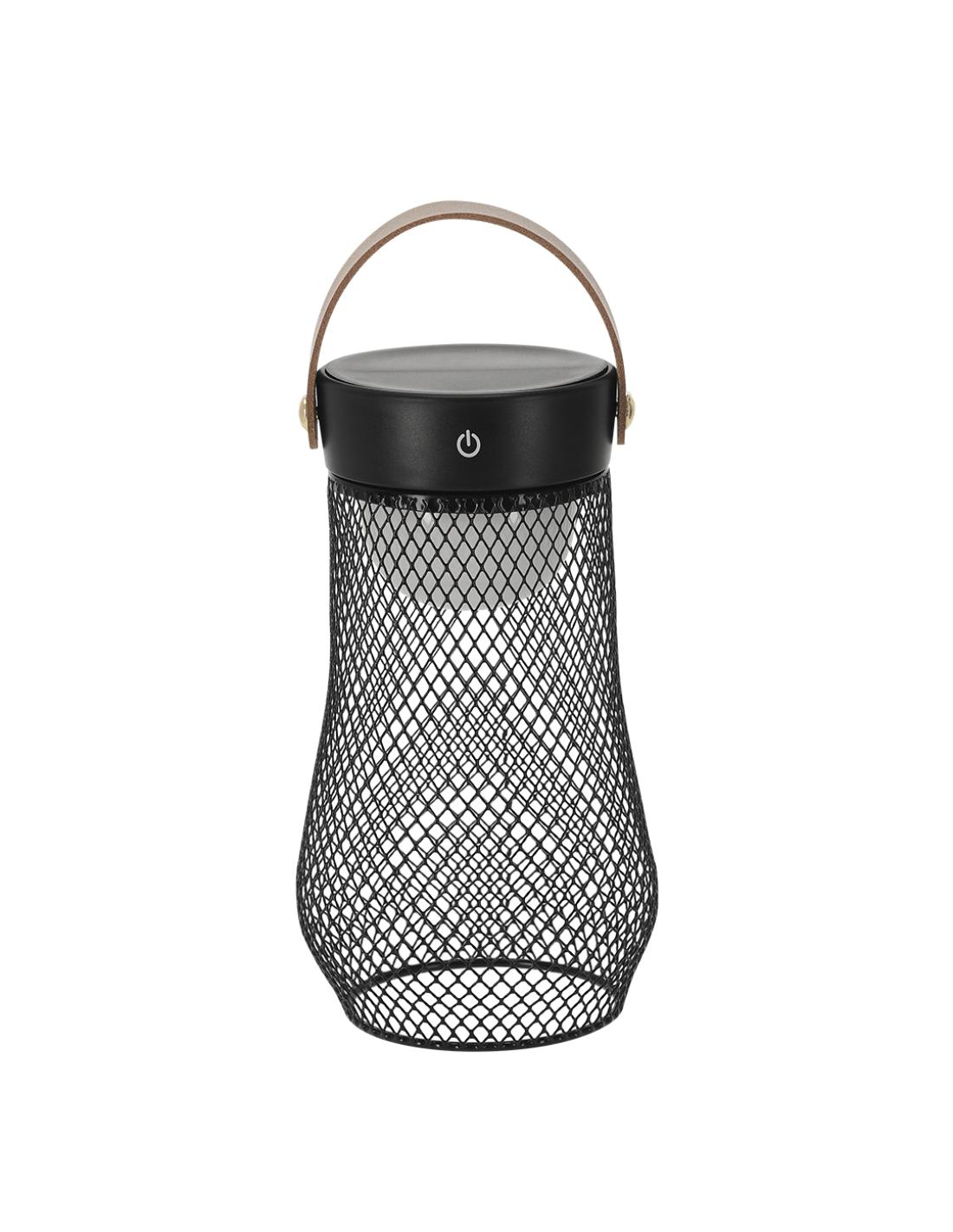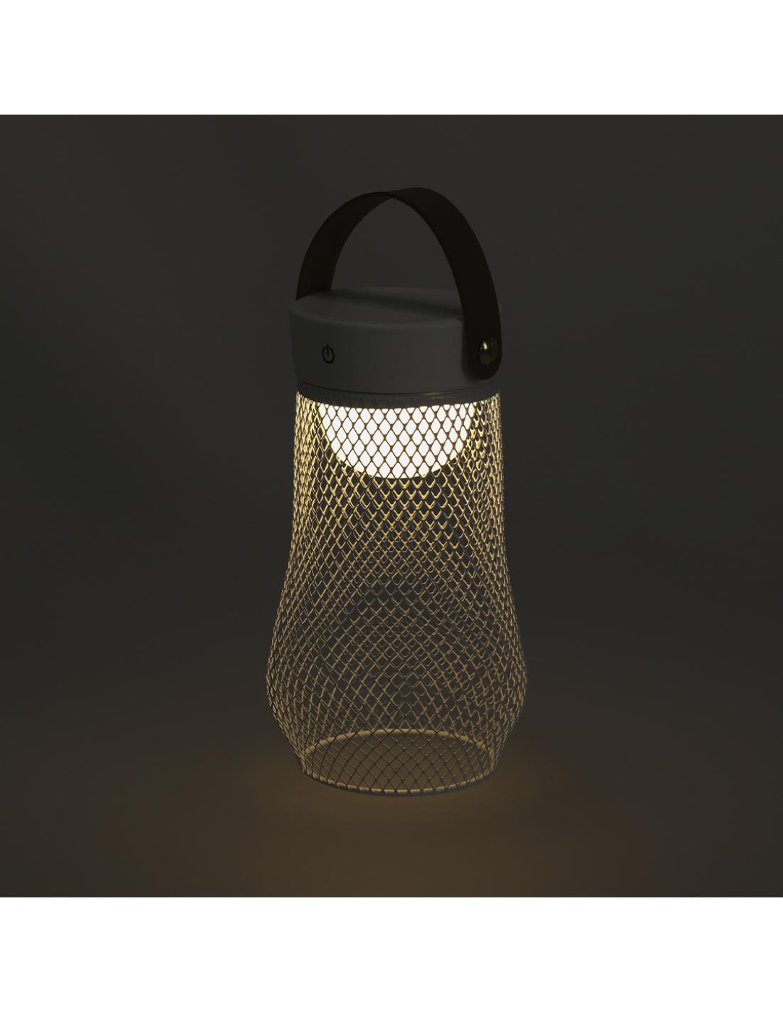 Lámpara de diseño en metal. Incluye asa superior en suave PU. Dispone de 3 modos de luz (blanca, neutra y cálida). Equipada con 24 LEDs. Ideal tanto para espacios interiores como exteriores. Botón táctil integrado para encendido, apagado y la selección del modo de luz. Equipada con batería recargable de 1.200 mAh y entrada Tipo C.