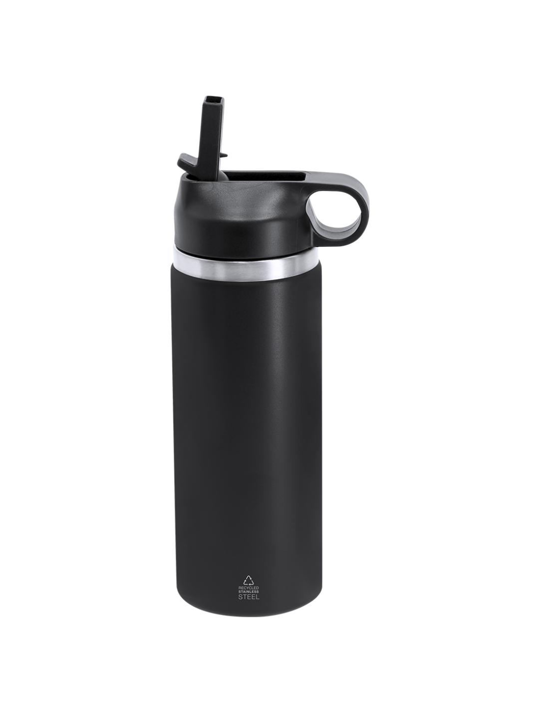 Bidón con 500 ml de capacidad fabricado en Acero Inoxidable Reciclado de doble pared, que garantiza una mejor y más duradera conservación de la temperatura. Sistema de fácil apertura con dosificador de pajita (libre de BPA) y asa de transporte a juego. Con distintivo de Acero Inox Reciclado. El acero es uno de los materiales más demandados y que puede encontrarse casi en todas partes, desde productos de uso diario a grandes construcciones. Con innumerables propiedades, entre las que cabe destacar la durabilidad y su alto grado de reutilización, convirtiéndolo en una alternativa muy valorada en soluciones de sostenibilidad. Debidamente tratado, permite obtener nuevos recursos de infinita utilización.