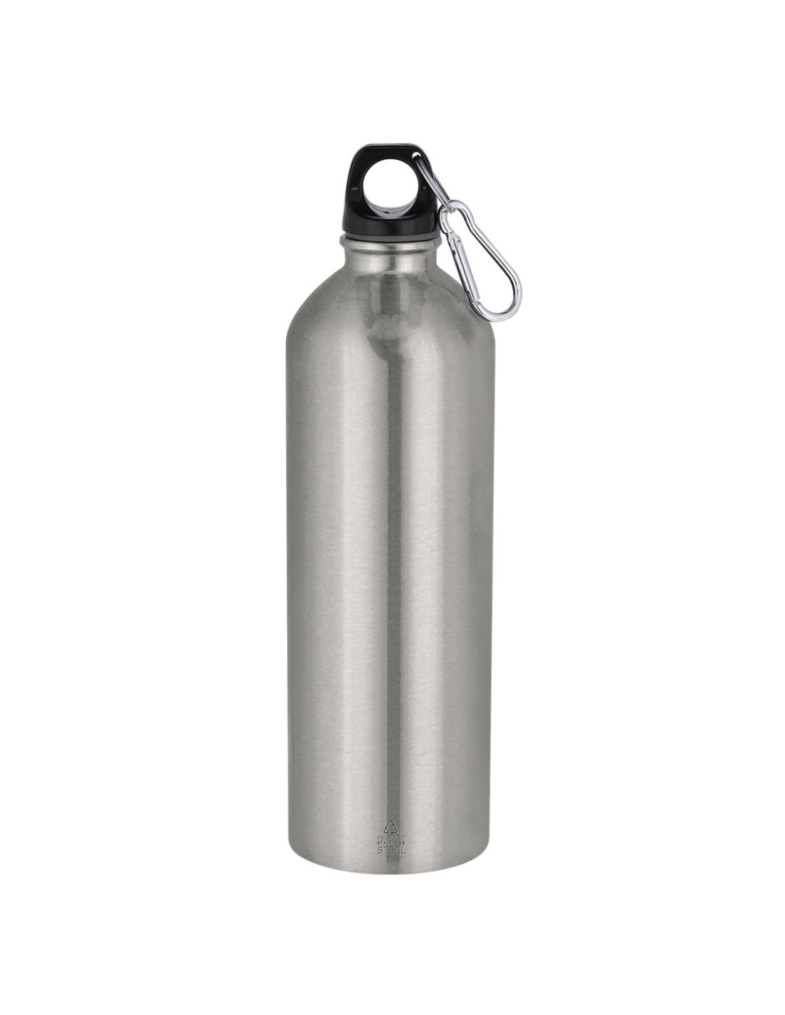 Bidón con 800 ml de capacidad. Fabricado en Acero Inoxidable Reciclado con acabado metalizado. Tapón negro de cierre a rosca para garantizar un sellado óptimo. Incluye mosquetón metálico que facilita su transporte. Con distintivo Acero Inoxidable Reciclado. El acero es uno de los materiales más demandados y que puede encontrarse casi en todas partes, desde productos de uso diario a grandes construcciones. Con innumerables propiedades, entre las que cabe destacar la durabilidad y su alto grado de reutilización, convirtiéndolo en una alternativa muy valorada en soluciones de sostenibilidad. Debidamente tratado, permite obtener nuevos recursos de infinita utilización.