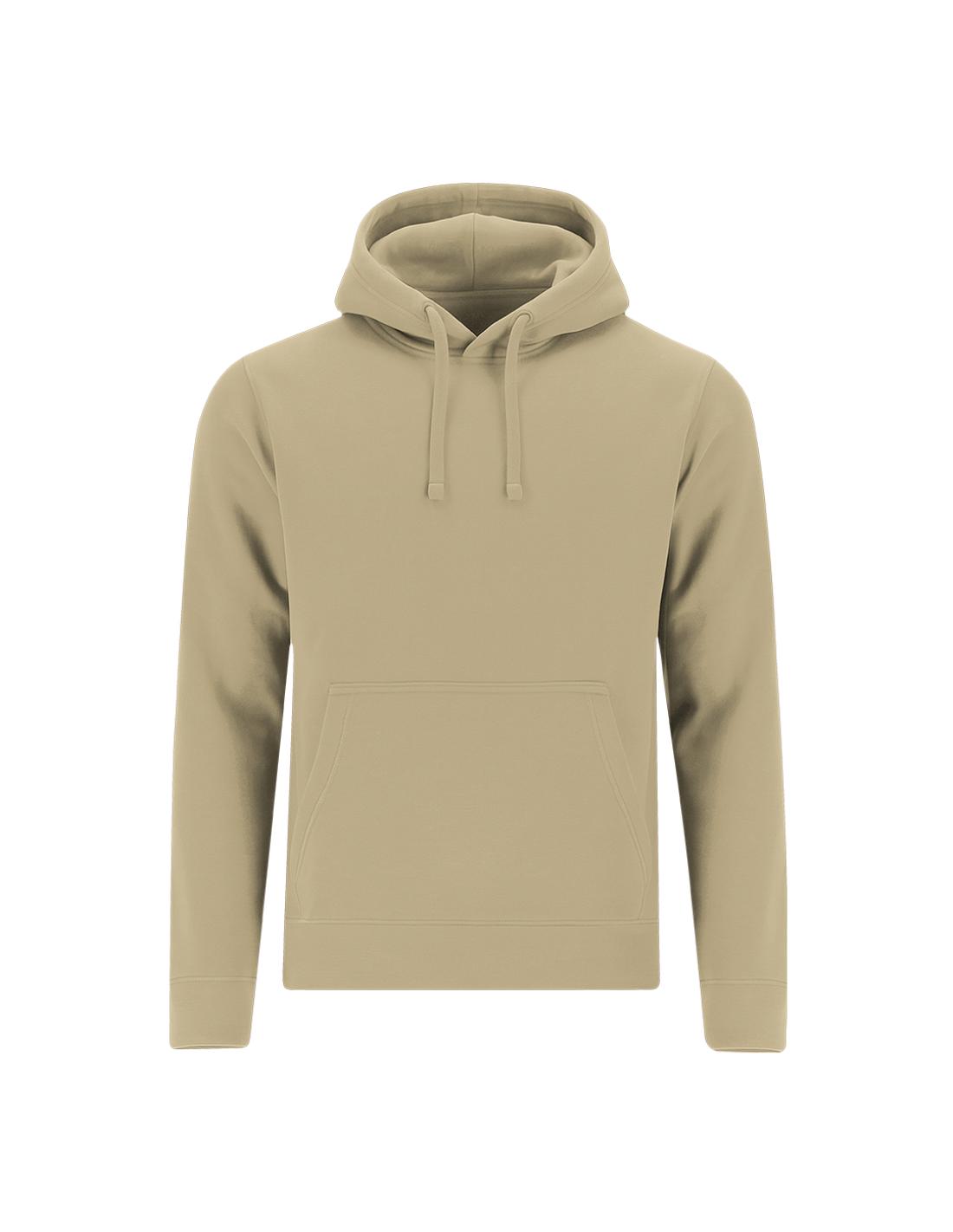 Sudadera con capucha forrada a tono de doble tejido. Confeccionada en algodón y poliester en suave felpa perchada de 280 g/m2. Con Bolsillo tipo canguro. Cordón ajustable y ojales metálicos a tono. Cubrecosturas en el cuello. Puños y la cintura en punto canalé 1x1 con elastano para mayor ajuste y confort.