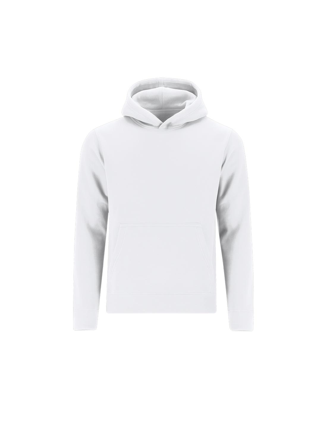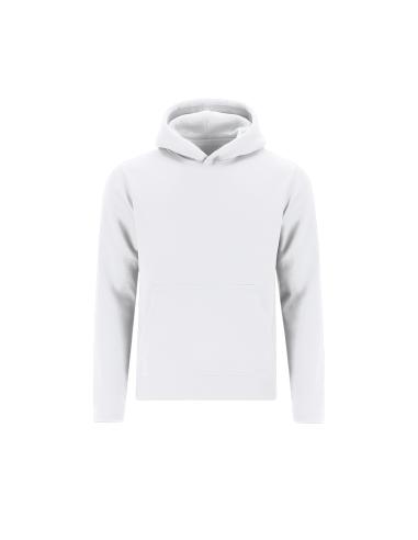 Sudadera infantil unisex con capucha forrada a tono de doble tejido. Confeccionada en algodón y poliester en suave felpa perchada de 280 g/m2. Con bolsillo tipo canguro. Cubrecosturas en el cuello. Puños y la cintura en punto canalé 1x1 con elastano para mayor ajuste y confort.