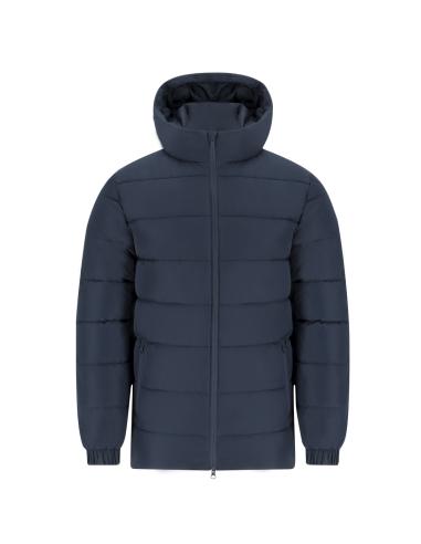 Parka unisex acolchada con capucha fija y visera integrada. Incorpora cremallera frontal a tono con doble tirador y protector de barbilla. Puños elásticos para un ajuste cómodo y dos bolsillos laterales con cierre de cremallera a juego. Incluye acceso interior para marcaje en pecho izquierdo y espalda, ideal para personalización.