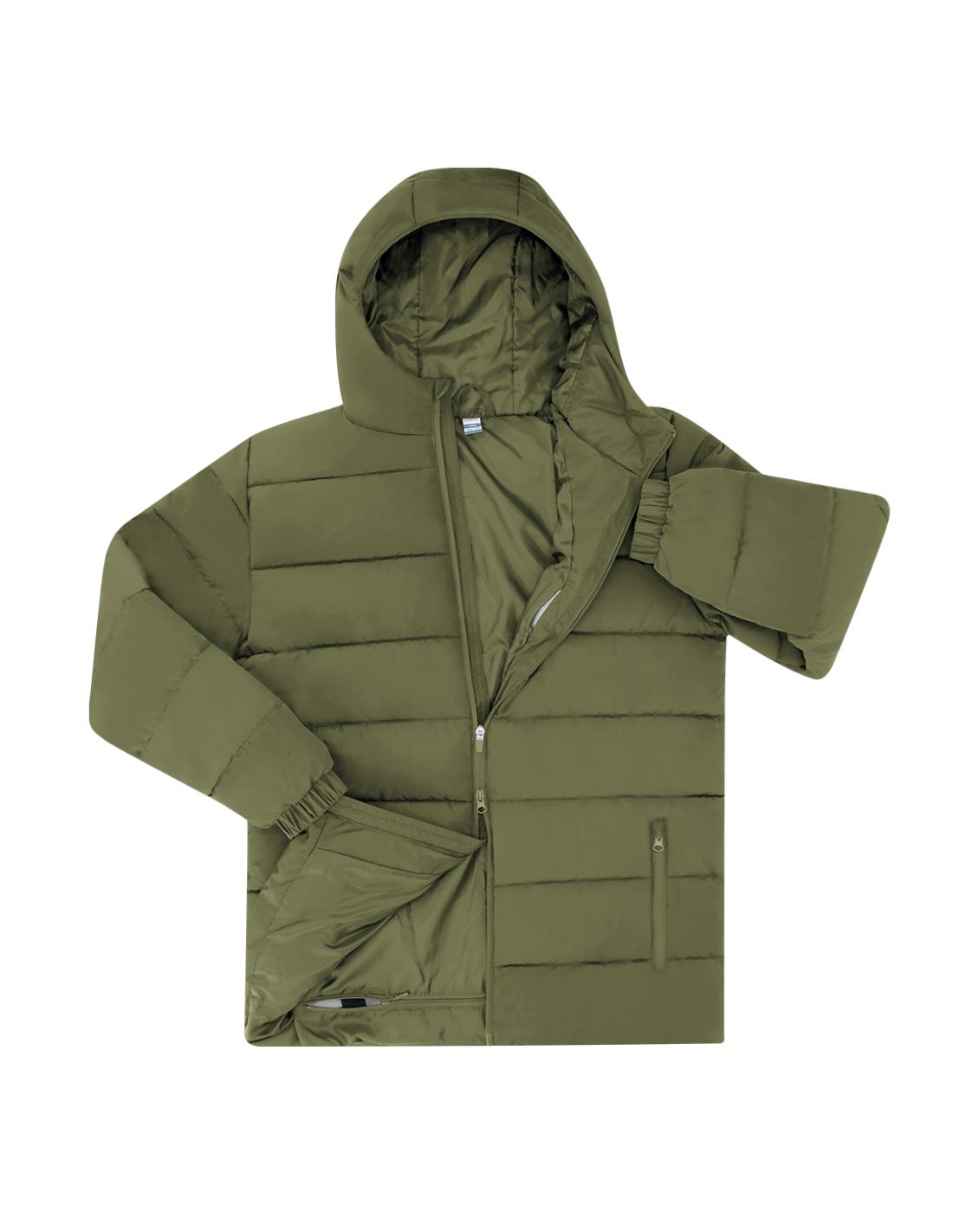 Parka infantil unisex acolchada con capucha fija y visera integrada. Incorpora cremallera frontal a tono con doble tirador y protector de barbilla. Puños elásticos para un ajuste cómodo y dos bolsillos laterales con cierre de cremallera a juego. Incluye acceso interior para marcaje en pecho izquierdo y espalda, ideal para personalización.