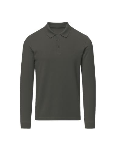 Polo unisex de manga larga confeccionado en tejido piqué. Cuello y puños en punto elástico 1x1 con elastano para un mejor ajuste y confort. Tapeta de tres botones a tono y cubrecosturas reforzado en cuello.