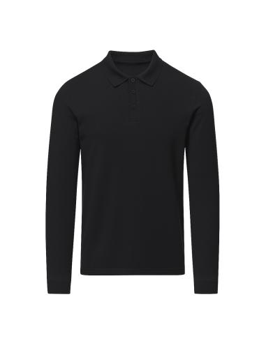 Polo unisex de manga larga confeccionado en tejido piqué. Cuello y puños en punto elástico 1x1 con elastano para un mejor ajuste y confort. Tapeta de tres botones a tono y cubrecosturas reforzado en cuello.