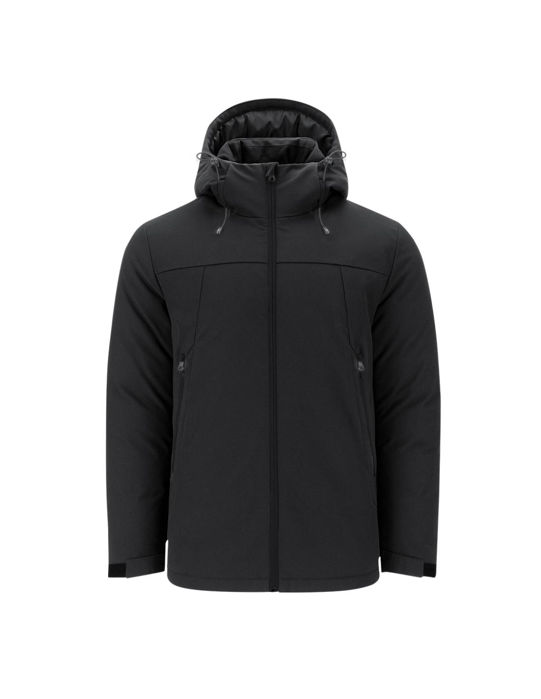 Parka unisex acolchada con capucha fija ajustable. Con cremallera frontal en color negro con protector de barbilla, que aporta mayor comodidad y protección. Dos bolsillos laterales con cierre de cremallera en color negro. Puños ajustables con velcro.