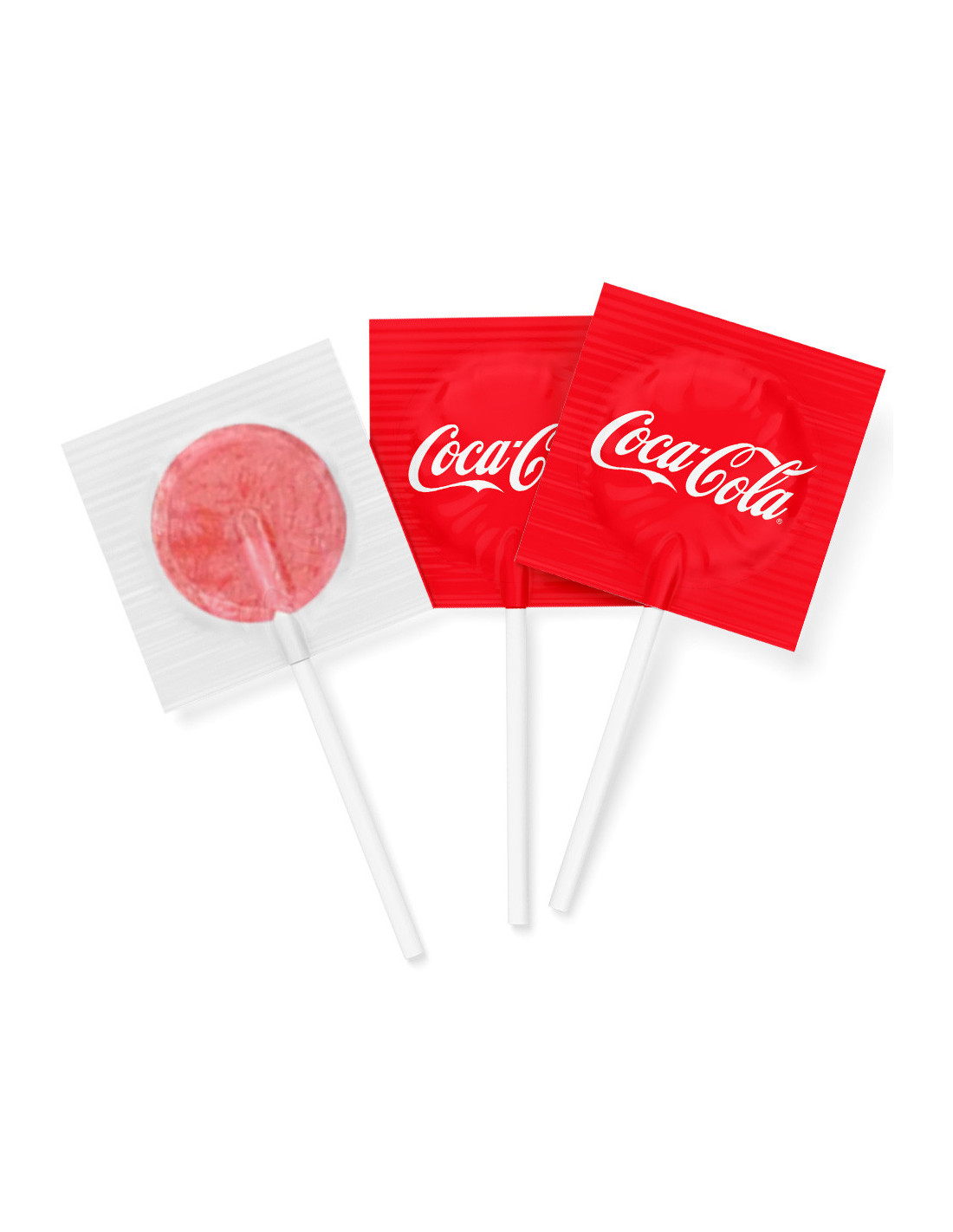 Riquísimas piruletas promocionales redondas con envuelta de medidas 5,2 cm x 6 cm totalmente personalizable. Posibilidad de escoger color del palo y combinar sabores.