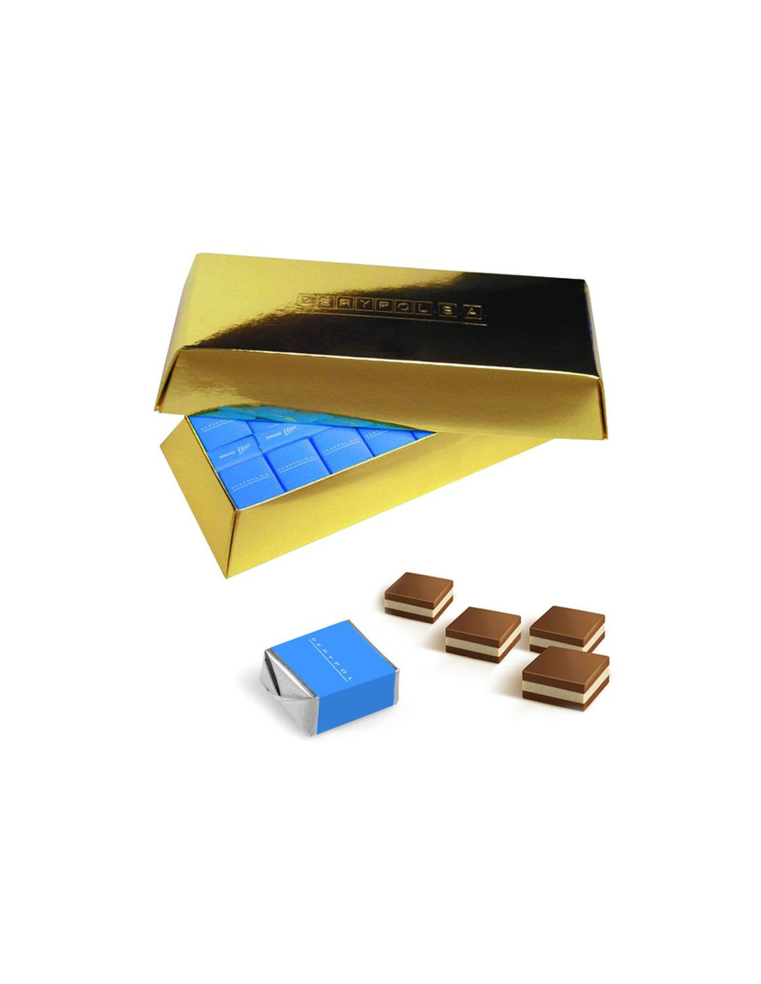 - Envasado: Lingote de cartón dorado con 12 / 24 bombones.