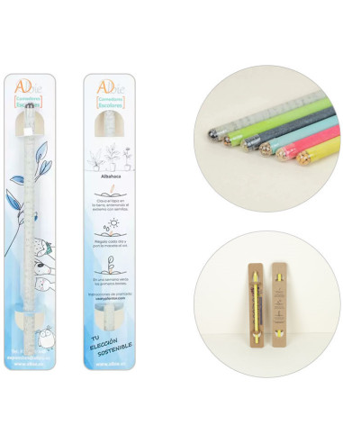 El lápiz está fabricado con papel reciclado, es 100% reciclable y por supuesto ¡plantable!. Una vez el lápiz se termine, se podrá plantar gracias a las semillas que contiene en el extremo.