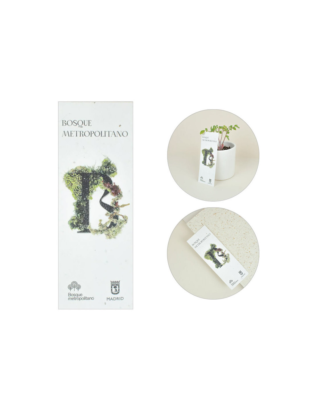 El papel de este original marcapáginas está compuesto de algodón residual de la industria textil, al que se le añaden semillas para que después de su uso se pueda plantar. De esta forma se recuperan restos textiles y ropa utilizada de algodón blanco, para reciclarlos y convertirlos en un papel ecológico y sostenible. En un momento de la producción se añaden semillas a la mezcla de la pasta, para conseguir este papel reciclado plantable.
