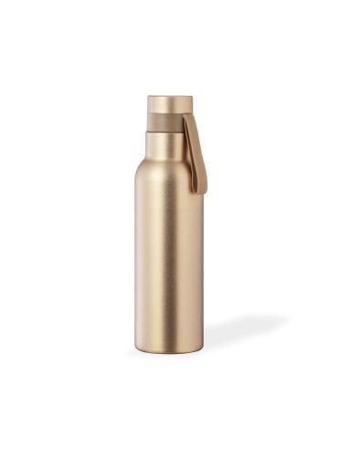 Bidón térmico de 530 ml de capacidad, fabricado en acero inox de doble pared. Con aislamiento de cobre al vacío, que permite mantener el calor y el frío durante más tiempo, llegando a las 12 y 48 horas respectivamente. Tapón a rosca con asa integrada a juego, libre de BPA. Disponible en variada gama de colores metalizados y presentado en caja individual de diseño kraft.