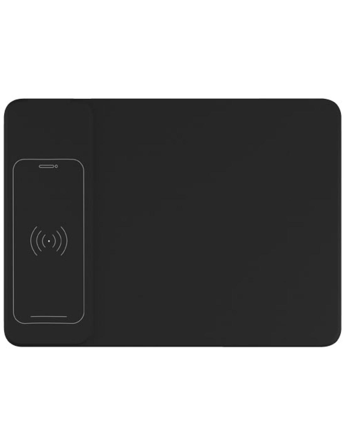 Alfombrilla de ratón de carga inalámbrica con logotipo retroiluminado de 10 W. Entrada/salida USB: 5 V-2 A. Cable micro USB incluido. El embalaje está fabricado con papel reciclado.