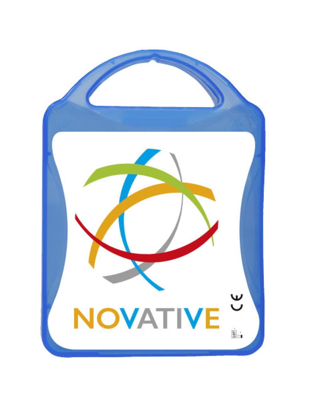 Kit de primeros auxilios para los viajeros. Con él estarás preparado para tratar cualquier pequeña herida durante tu viaje. Contenido: 12 apósitos adhesivos resistentes al agua, 4 toallitas limpiadoras, 2 toallitas secas, 2 gasas para quemaduras, 1 adhesivo para ampollas, 2 toallitas refrescantes, 1 crema aloe vera. Todos los complementos de primeros auxilios cumplen todas las normativas de la UE. El precio incluye impresión a todo color en la etiqueta.