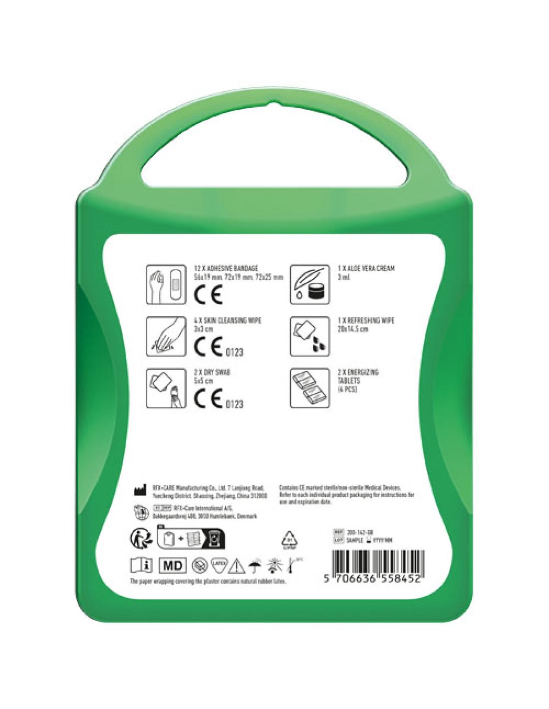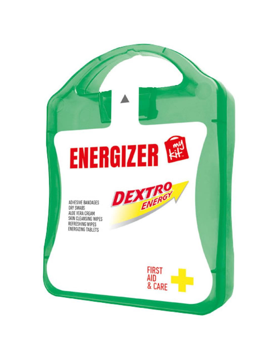 Kit ideal para darte energía. Con este kit podrás refrescarte y energizarte además de estar preparado para pequeños accidentes o heridas. Contenido: 12 apósitos adhesivos resistentes al agua, 2 2 packs de tabletas energéticas (4uds), 1 toallita refrescante, 1 aloe vera, 4 toallitas limpiadoras, 2 toallitas secas. Todos los complementos de primeros auxilios cumplen todas las normativas de la UE. El precio incluye impresión a todo color en la etiqueta.
