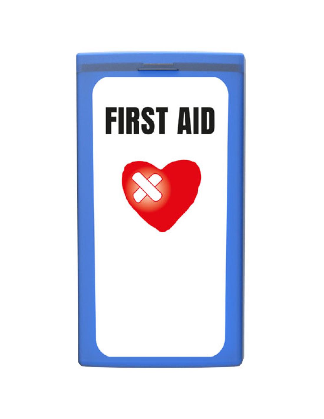 Kit básico de primeros auxilios. Ideal por su tamaño para llevar siempre encima y estar preparado para pequeñas heridas. Contenido: 5 apósitos adhesivos resistentes al agua, 2 toallitas limpiadoras. Todos los complementos de primeros auxilios cumplen todas las normativas de la UE. El precio incluye impresión a todo color en la etiqueta.