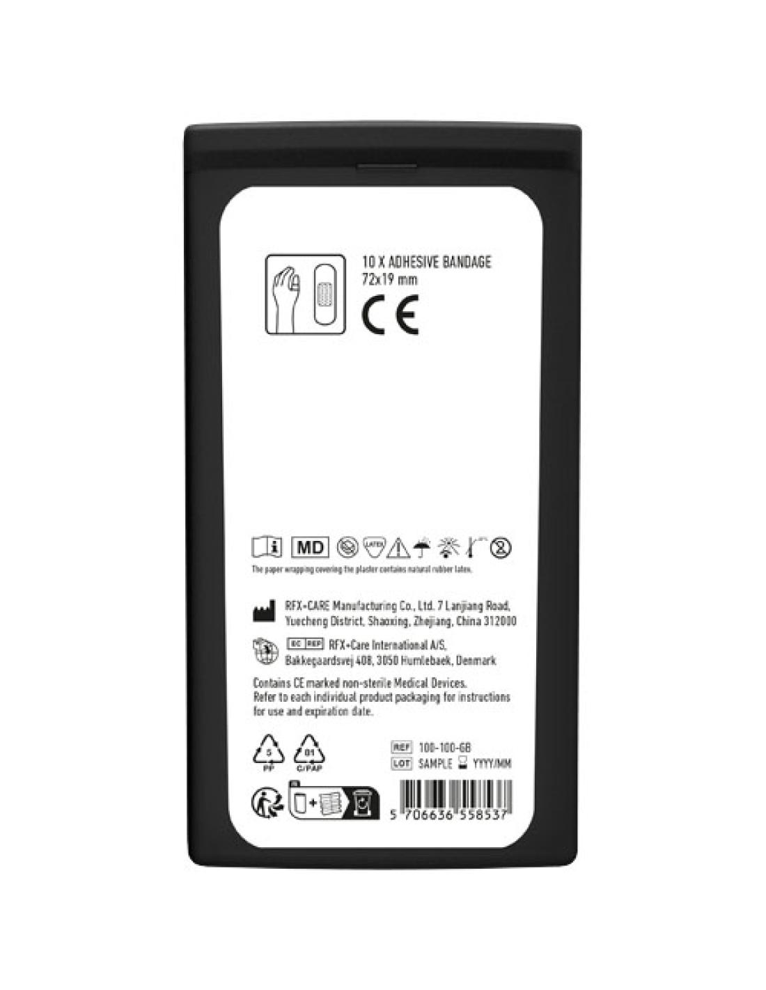 Kit de apósitos adhesivos. El tamaño del kit es ideal para llevarlo en el bolso o la mochila. Contenido: 10 apósitos adhesivos. Todos los complementos de primeros auxilios cumplen todas las normativas de la UE. El precio incluye impresión a todo color en la etiqueta.