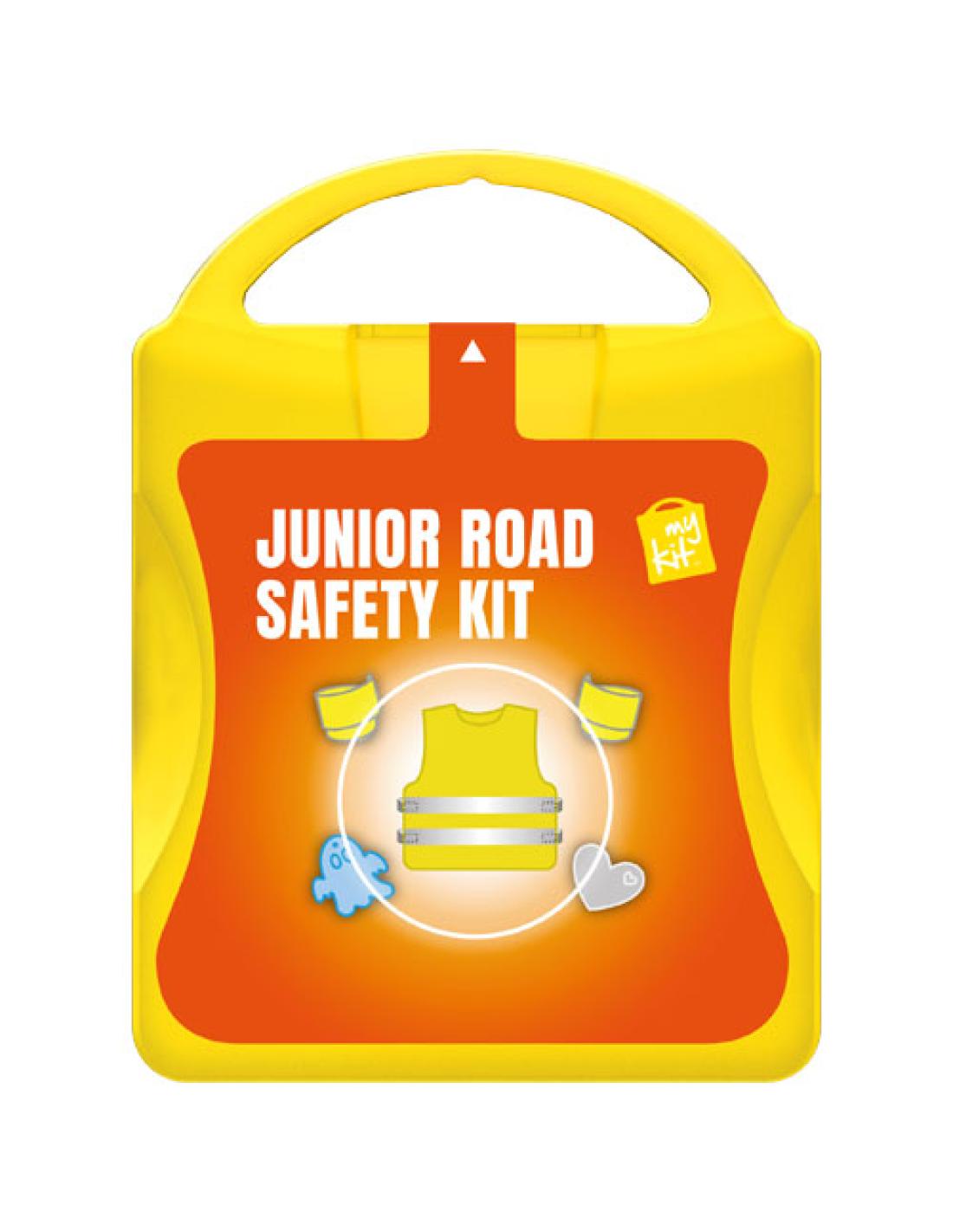 Kit de seguridad vial ideal para niños. Este kit te asegura de que tus niños estarán más visibles y seguros cerca de la carretera. Contenido: 1 chaleco de seguridad, 2 pulseras slap y 2 colgantes reflectantes, 1 pegatina reflectante. Todos los complementos de primeros auxilios cumplen todas las normativas de la UE. El precio incluye impresión a todo color en la etiqueta.