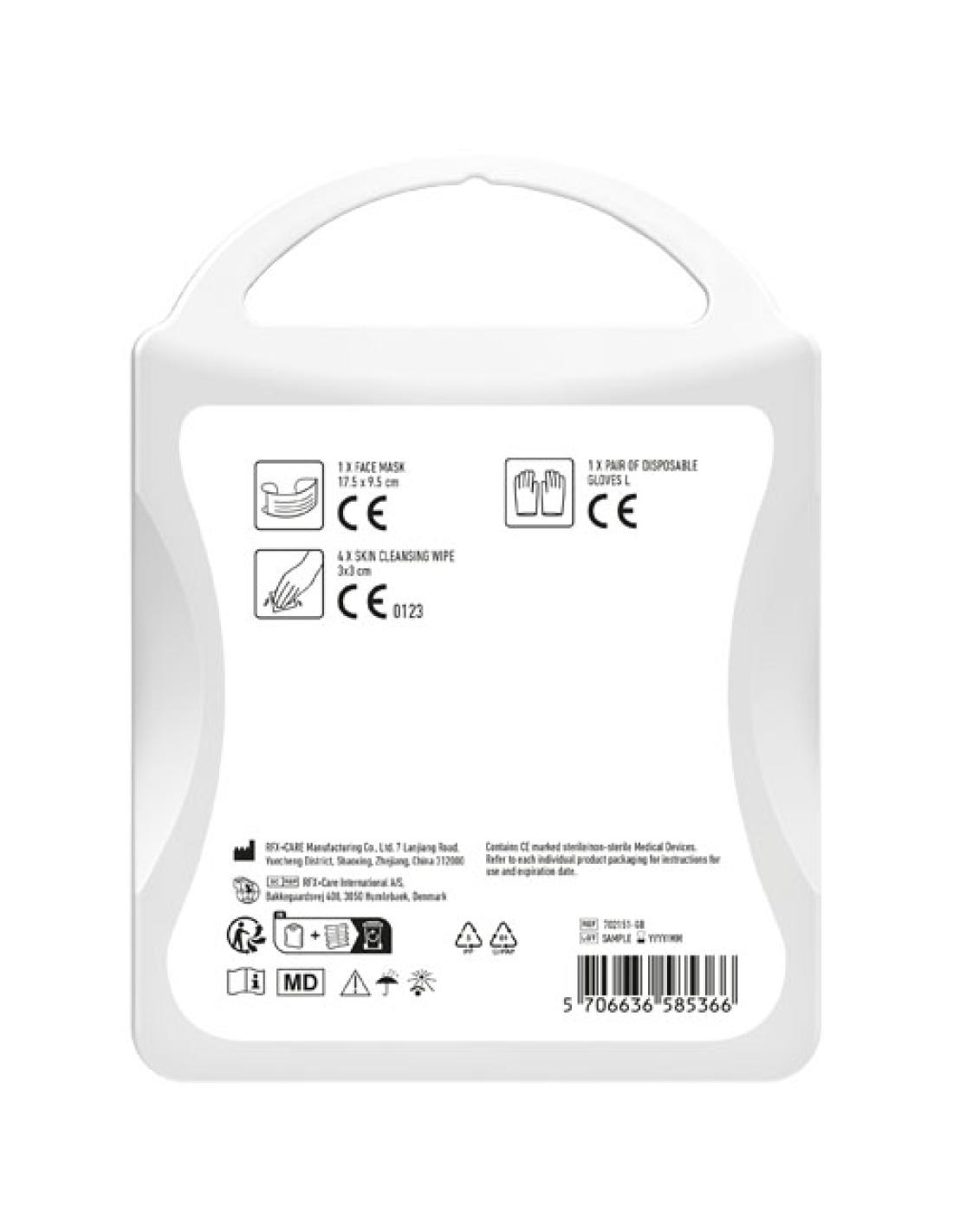 Kit de protección útil para tener a mano en casa, en el coche o para llevar de vacaciones. Contenido del kit: 1 mascarilla, 4 toallitas limpiadoras de manos y 1 par de guantes. Todos los artículos del kit cumplen con todas las normativas vigentes en la UE. El precio incluye impresión a todo color.