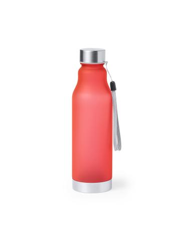 Bidón de 600ml de capacidad. Libre de BPA, con cuerpo de RPET elaborado a partir de plástico reciclado, para así fomentar la reutilización de residuos plásticos y contribuir a la sostenibilidad del planeta. Tapón a rosca en acero inox, con cordón de transporte y base a juego. Disponible en variada gama de colores.
