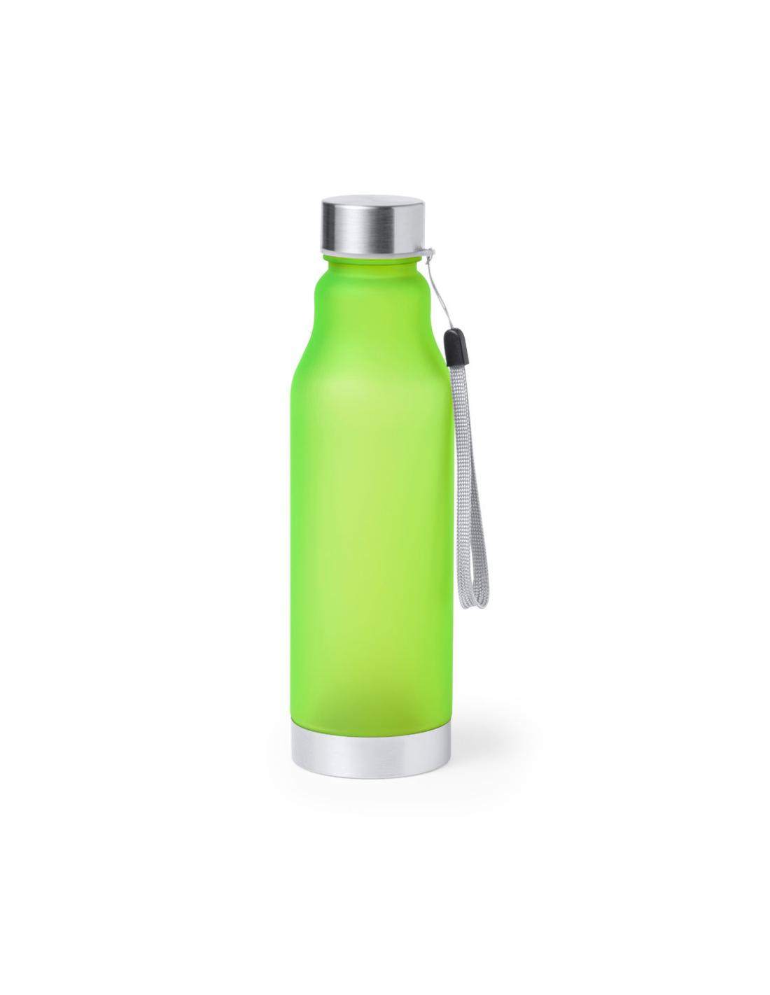 Bidón de 600ml de capacidad. Libre de BPA, con cuerpo de RPET elaborado a partir de plástico reciclado, para así fomentar la reutilización de residuos plásticos y contribuir a la sostenibilidad del planeta. Tapón a rosca en acero inox, con cordón de transporte y base a juego. Disponible en variada gama de colores.