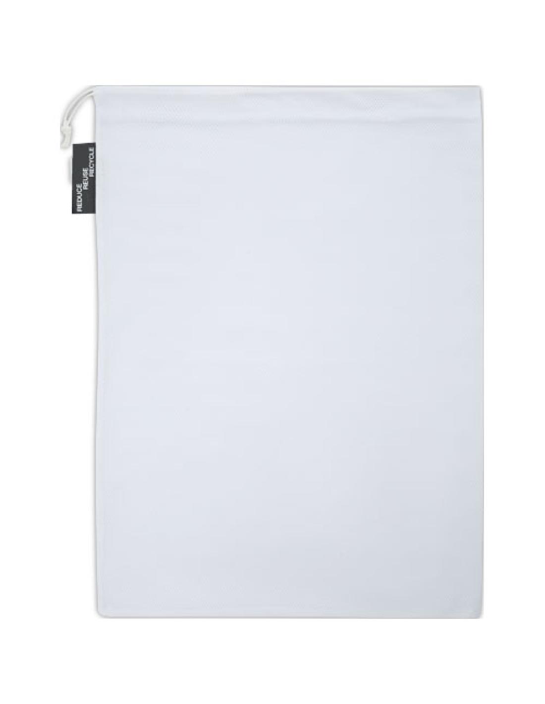 Bolsa de la compra reutilizable, fabricada en poliéster 100% reciclado de 60-65 g/m2, con cierre de cordón. El uso de esta bolsa contribuye a la reducción de las bolsas de plástico. Su durabilidad garantiza la reutilización y el lavado, asegurando la higiene de la bolsa en todo momento. Impresión en sublimación por toda la superficie. Fabricada en Europa.