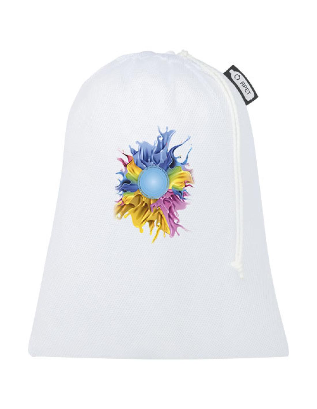 Juego de tres bolsas reutilizables para la compra, fabricadas en poliéster 100% reciclado de 60-65 g/m2, con cierre de cordón. Disponibles en tamaños: 15x21 cm, 25x32 cm, 30x41 cm. El uso de esta bolsa contribuye a la reducción de las bolsas de plástico. Su durabilidad garantiza la reutilización y el lavado, asegurando la higiene de la bolsa en todo momento. Impresión en sublimación por toda la superficie. Fabricada en Europa.