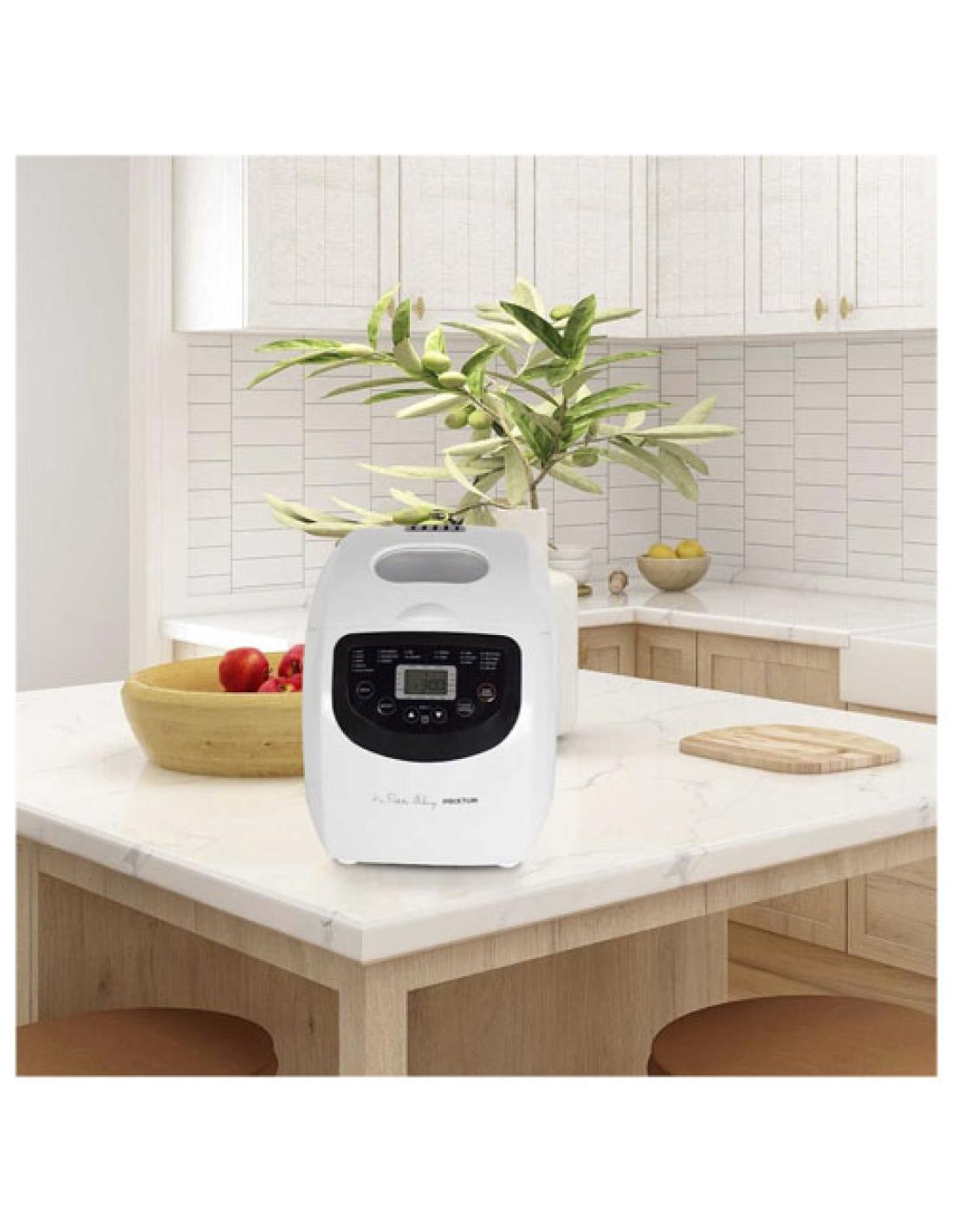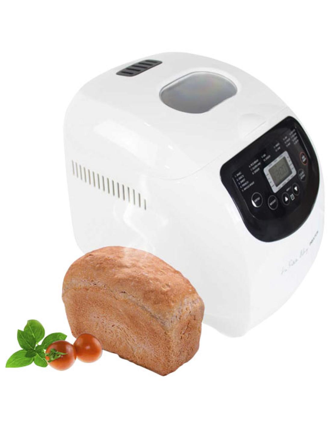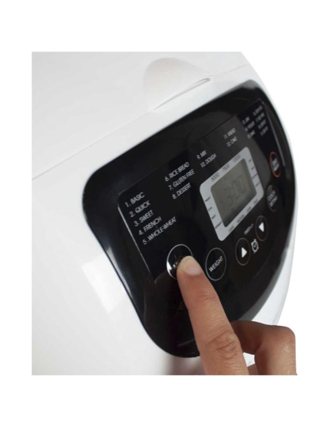 Panificadora con depósito extraíble antiadherente de 1000 g de capacidad y 19 configuraciones diferentes: Básico, Rápido, Dulce, Francés, Integral, De arroz, Sin gluten, Postre, Mezclar, Masa, Amasar, Tarta, Mermelada, Yogur, Hornear, Arroz meloso, Vino de arroz, Descongelar y Saltear. Viene con 3 niveles de tostado para todos los gustos. Diseñada con una ventana de vidrio en la parte superior para supervisar el progreso. La panificadora también tiene un sistema de seguridad para evitar el sobrecalentamiento, así como una función de mantener el calor. Viene con una taza medidora, una cuchara y un gancho. Potencia: 650 W. Nivel de ruido