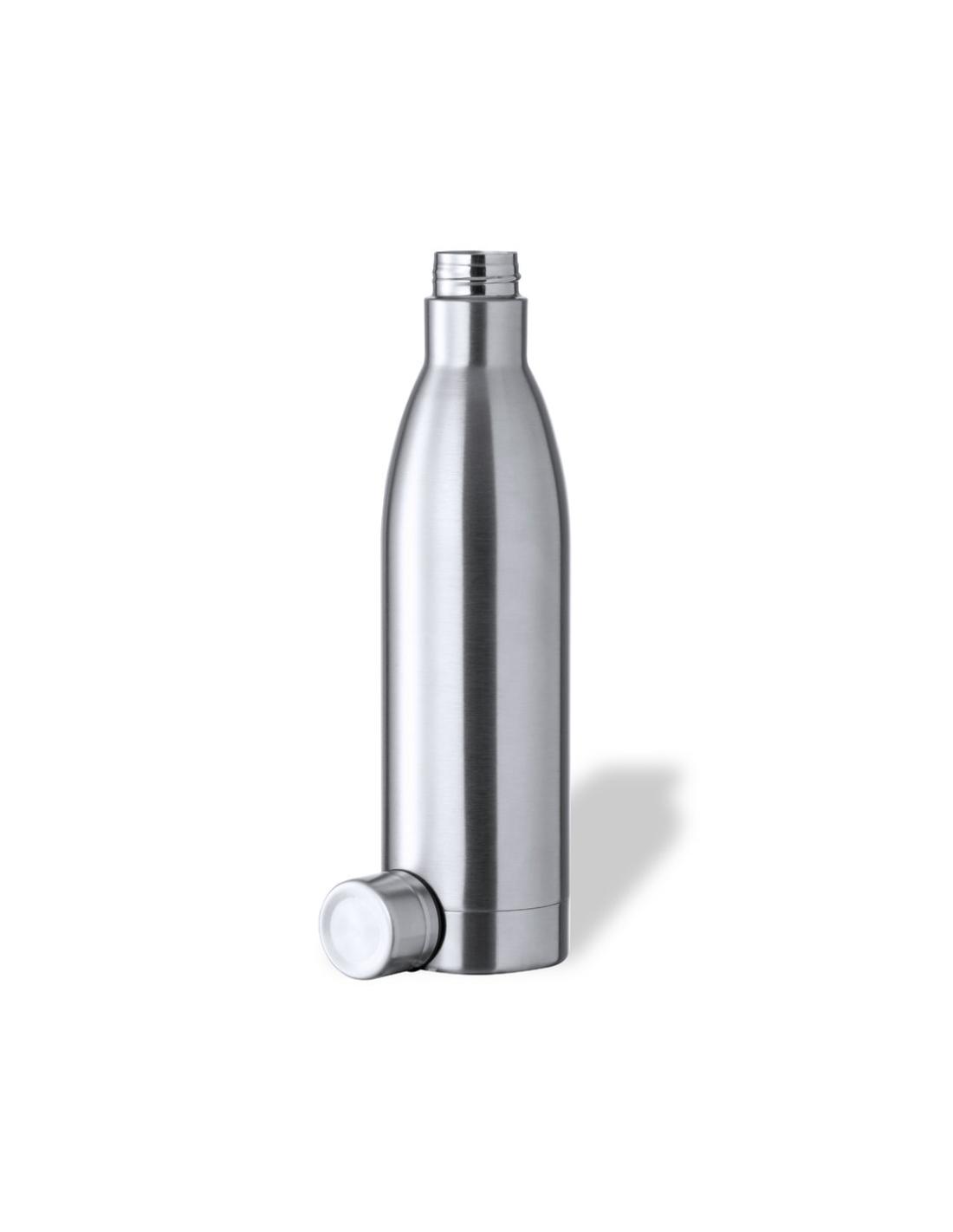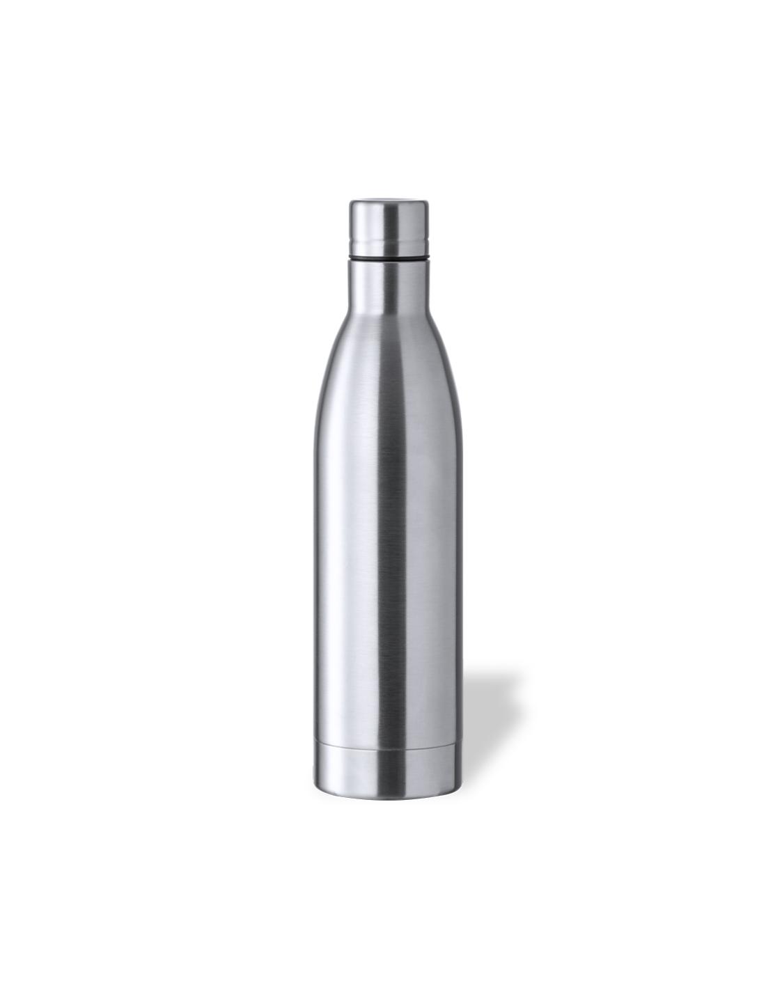 Bidón de 1 l de capacidad, fabricado en acero inox de acabado brillo. Con tapón a rosca en acero inox a juego, libre de BPA. Presentado en caja individual de diseño kraft.Disponible manual de instrucciones en español e inglés.