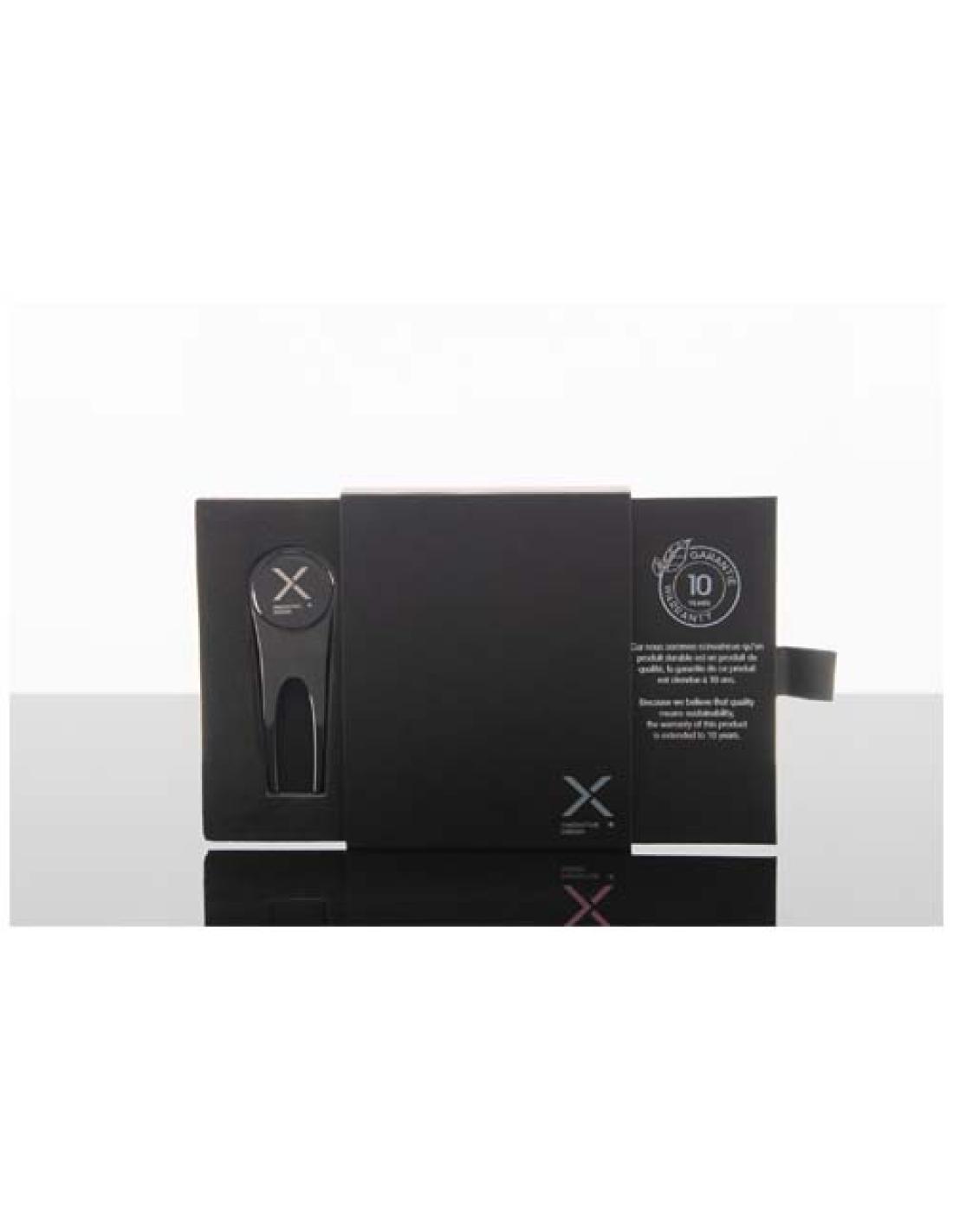 Este accesorio de golf combina un arreglapiques de aleación de zinc con un marcador de bolas magnético para controlar la bola sin esfuerzo. Se presenta en una caja de regalo de cartón reciclado. Tamaño: 8 x 2,5 cm.