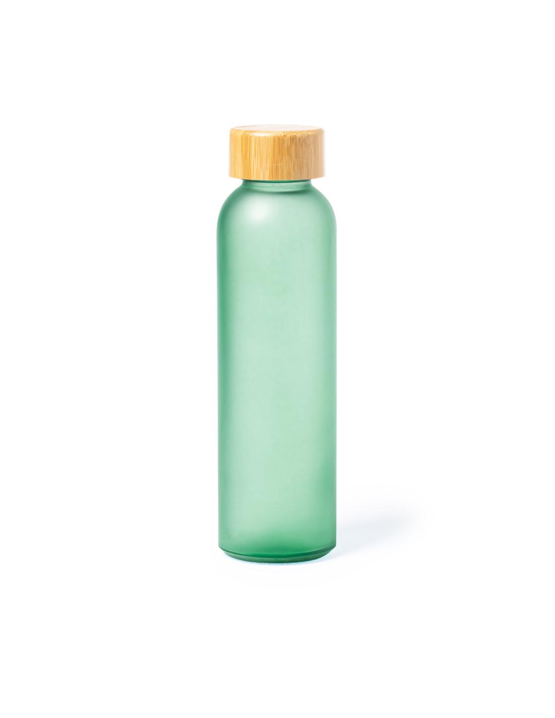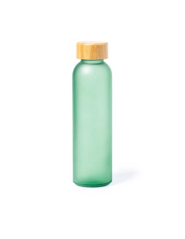 Bidón de línea nature y 500 ml de capacidad, con cuerpo fabricado en cristal, con tapón a rosca de bambú y libre de BPA. Disponible en variada gama de colores y presentado en caja individual de diseño eco.