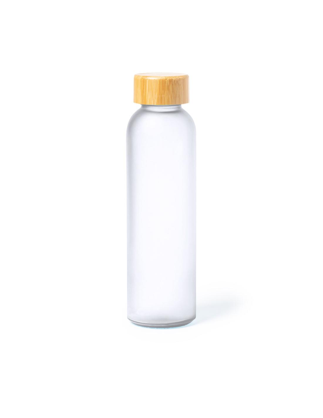 Bidón de línea nature y 500 ml de capacidad, con cuerpo fabricado en cristal, con tapón a rosca de bambú y libre de BPA. Disponible en variada gama de colores y presentado en caja individual de diseño eco.