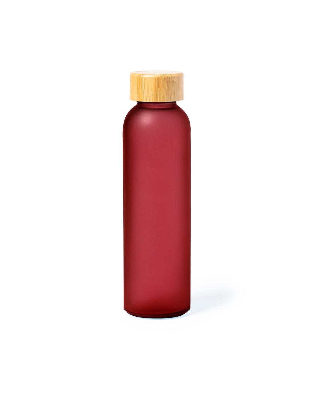 Bidón de línea nature y 500 ml de capacidad, con cuerpo fabricado en cristal, con tapón a rosca de bambú y libre de BPA. Disponible en variada gama de colores y presentado en caja individual de diseño eco.