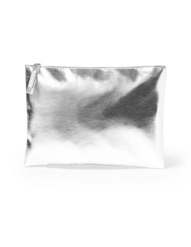 Neceser de polipiel en elegante acabado metalizado. Con cierre de cremallera y tirador a juego disponible en colores dorado, plateado y oro rosa.