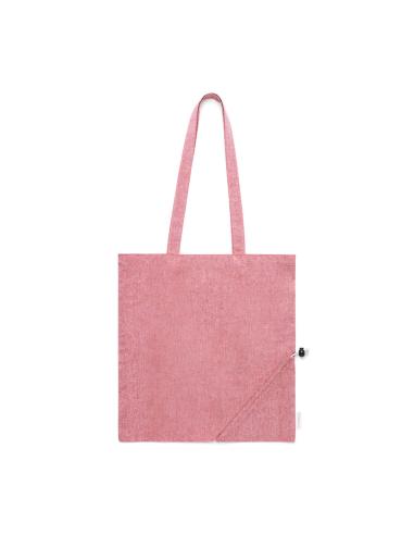 Bolsa plegable de línea nature, fabricada en algodón reciclado de 120g/m2. De acabado cosido y con asas largas reforzadas (70 x 2,5cm). Plegado de pequeño tamaño mediante cordón con accesorio de ajuste. Disponible en variada gama de colores, con distintivo algodón reciclado en etiqueta exterior. Resistencia hasta 6 kg de peso. Certificación GRS (Global Recycled Standard / Estándar de Reciclaje Global), que garantiza el origen reciclado del material usado para fabricar el producto