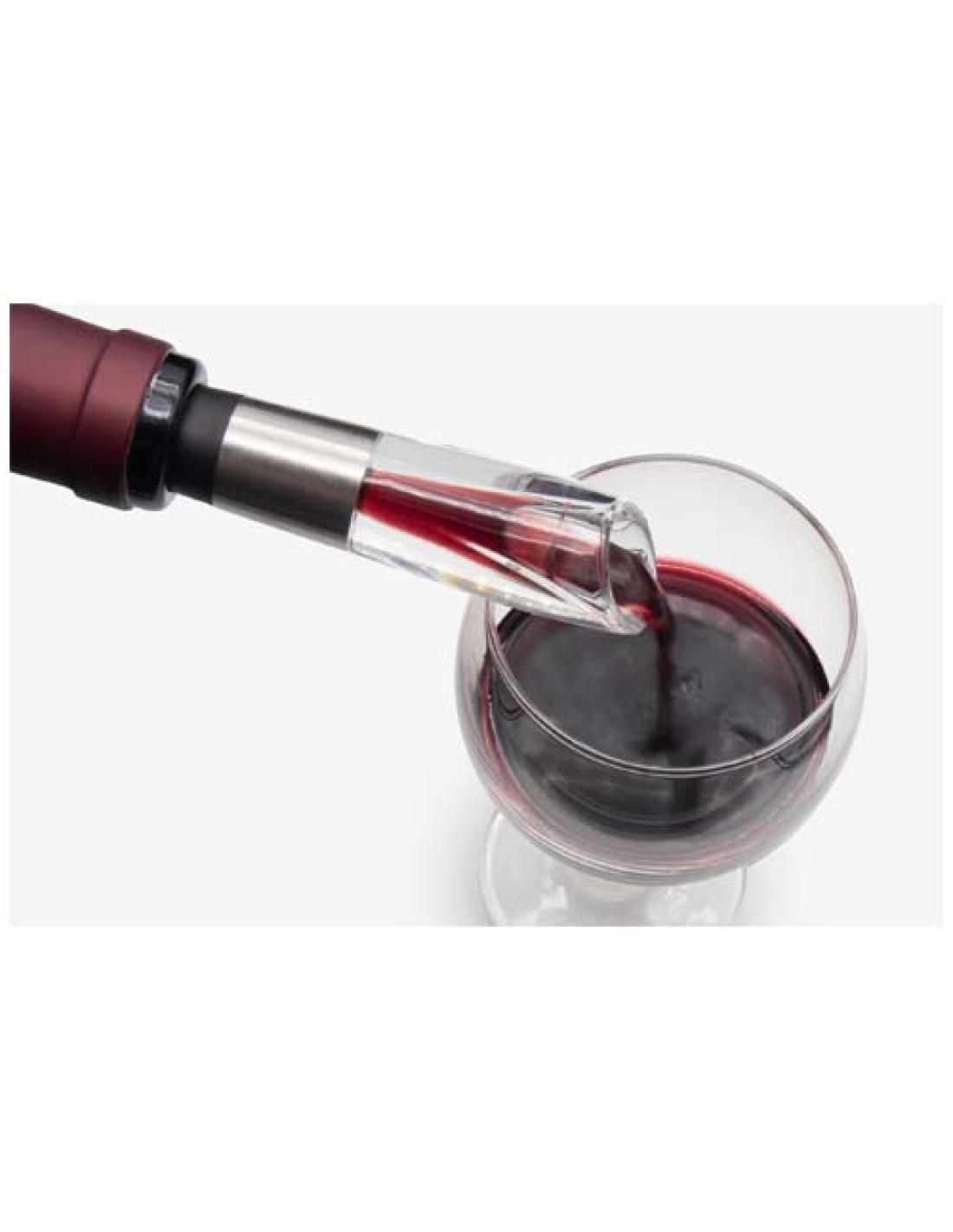 Disfruta de una mezcla perfecta de vino y tecnología con este set de vino eléctrico todo en uno. El cortacápsulas incluido se ajusta perfectamente al cuello de la botella para un corte limpio y sin esfuerzo. El sacacorchos totalmente automático extrae el corcho en segundos y se detiene de forma automática una vez completada la extracción, mientras que un segundo botón libera con suavidad el corcho. El set también incluye un vertedor con aireador incorporado para realzar el sabor del vino al servirlo. Para conservar el vino, utiliza el tapón de vacío para eliminar el aire y mantener la frescura: solo tienes que introducirlo con firmeza en la botella y bombear hasta notar resistencia. Antes del primer uso, carga por completo la base durante 12 horas. Puede personalizarse con grabado láser con efecto metálico.