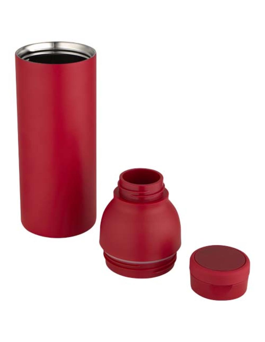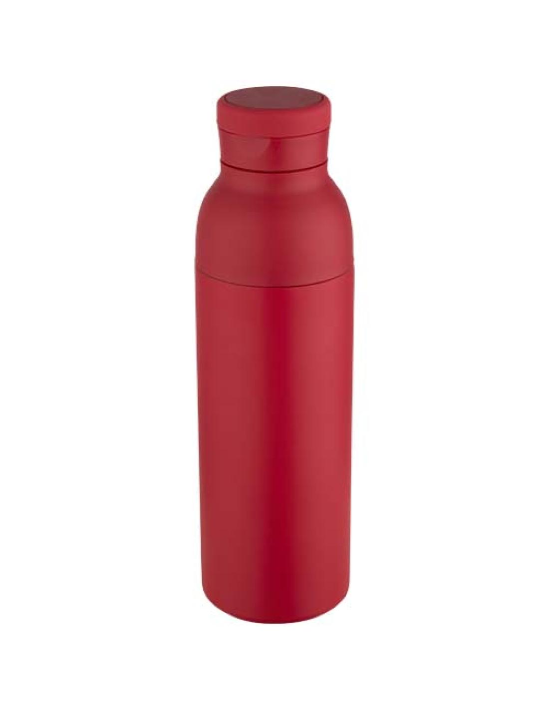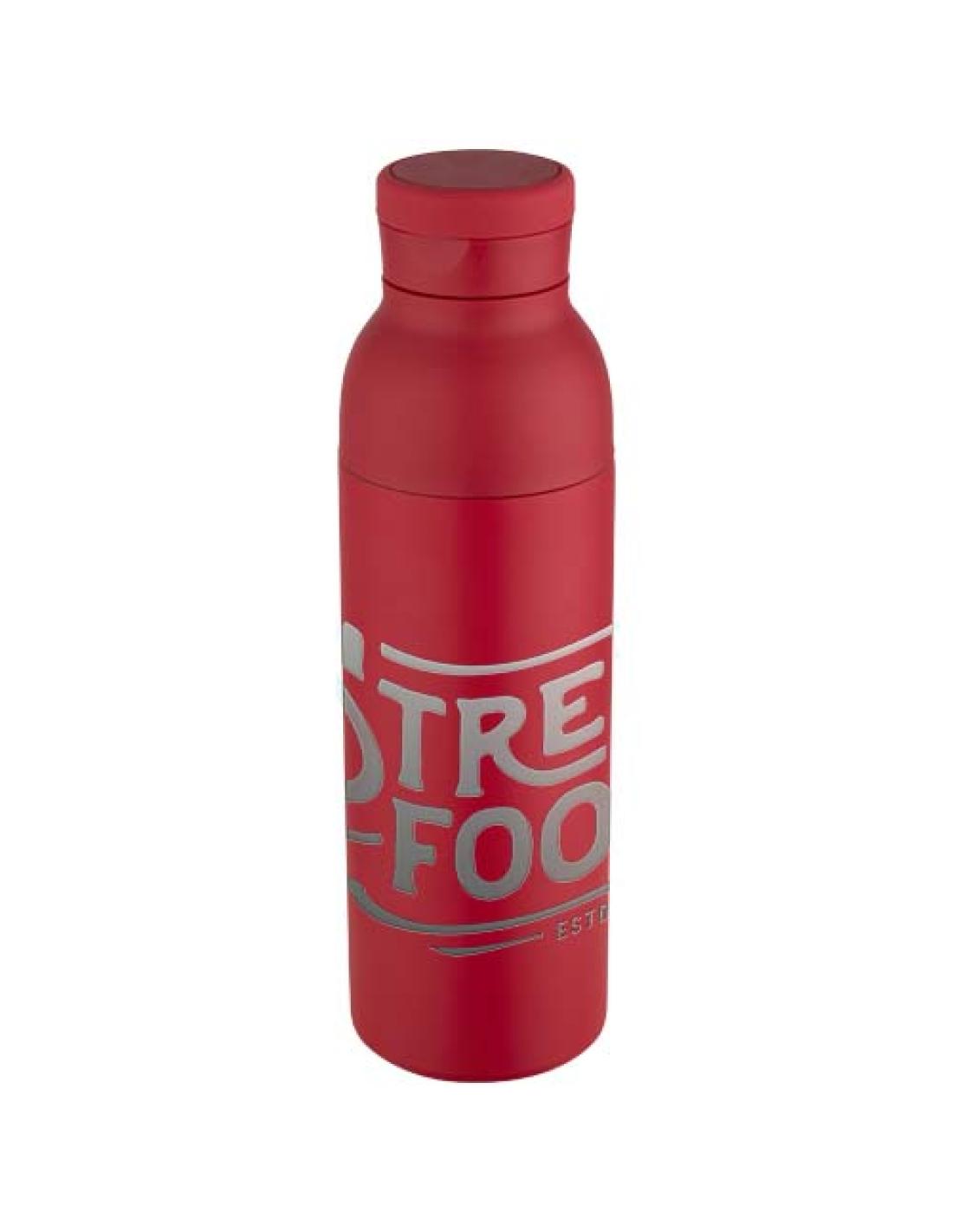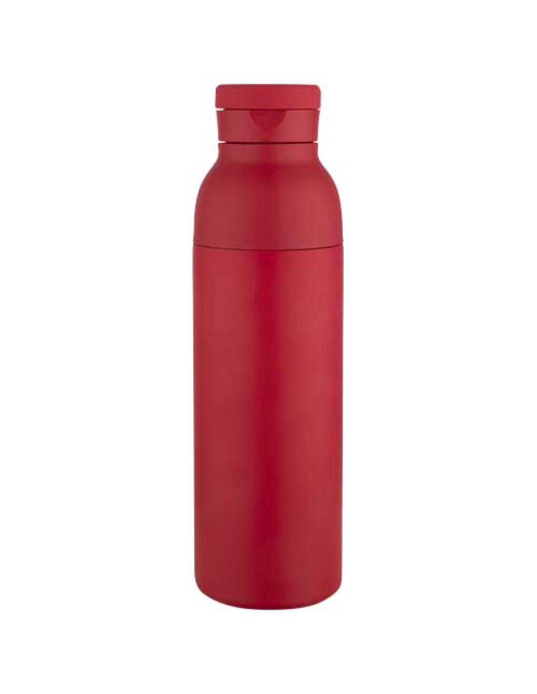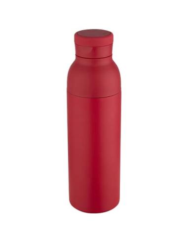 Botella de agua de acero inoxidable de doble pared, con aislamiento al vacío y certificación RCS que incorpora una discreta asa de silicona en la tapa. La construcción en dos piezas facilita la limpieza, mientras que el duradero recubrimiento en polvo y el chapado en cobre garantizan un rendimiento duradero. Se presenta en una caja de regalo de cartón reciclado. Capacidad: 650 ml.